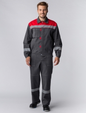 Костюм Липецк СОП (тк.Смесовая,260) п/к, т.серый-меланж/красный