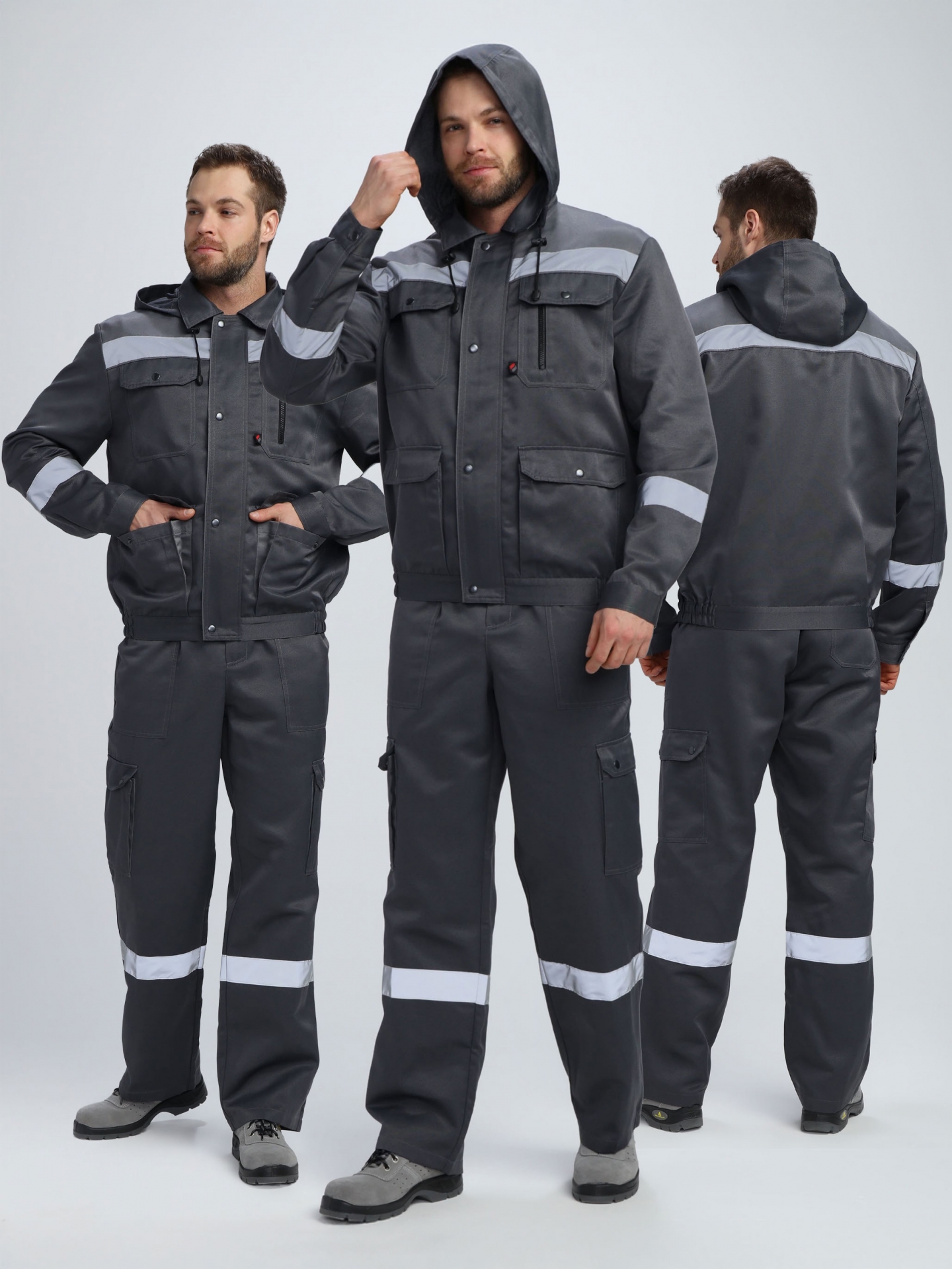 - Рукава с двухшовной конструкцией, светоотражающими полосами и манжетами на кнопке