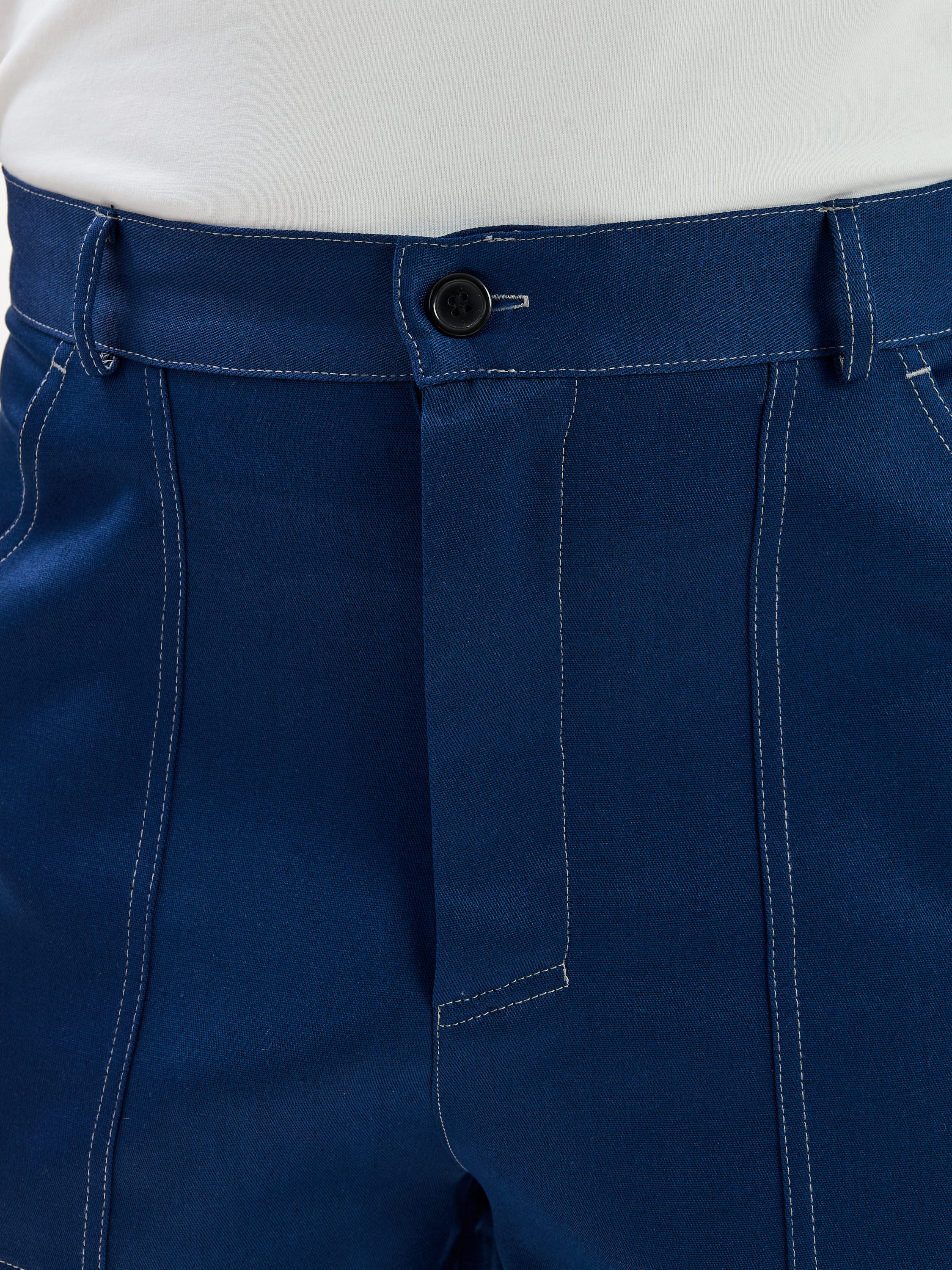 - Удобная посадка: пояс с пятью шлевками под ремень и талиевые вытачки