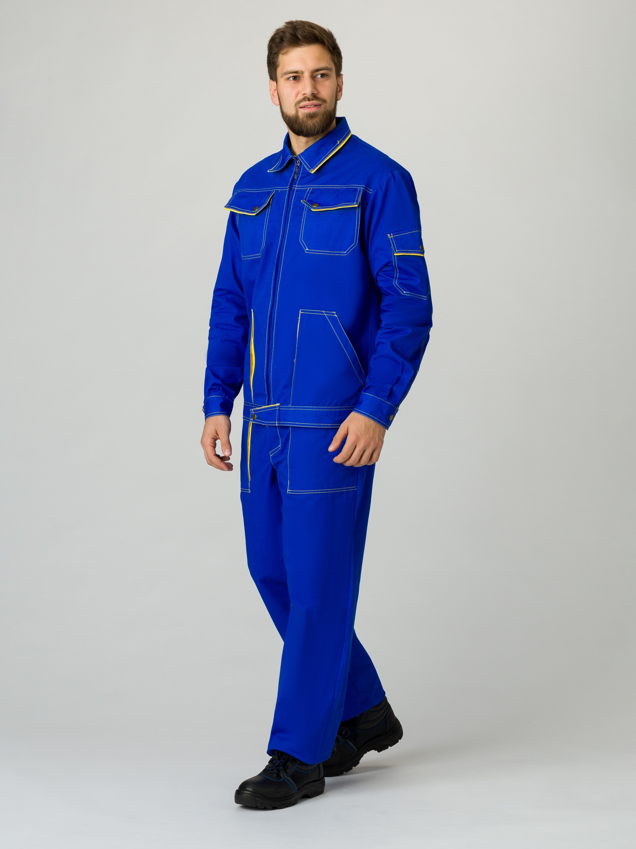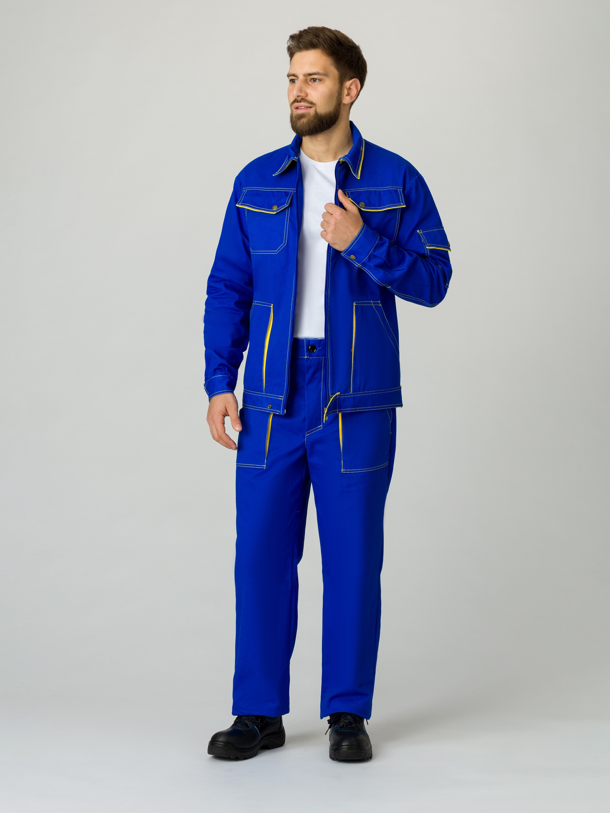 Костюм Лидер (тк.Саржа,250) брюки, васильковый/желтый