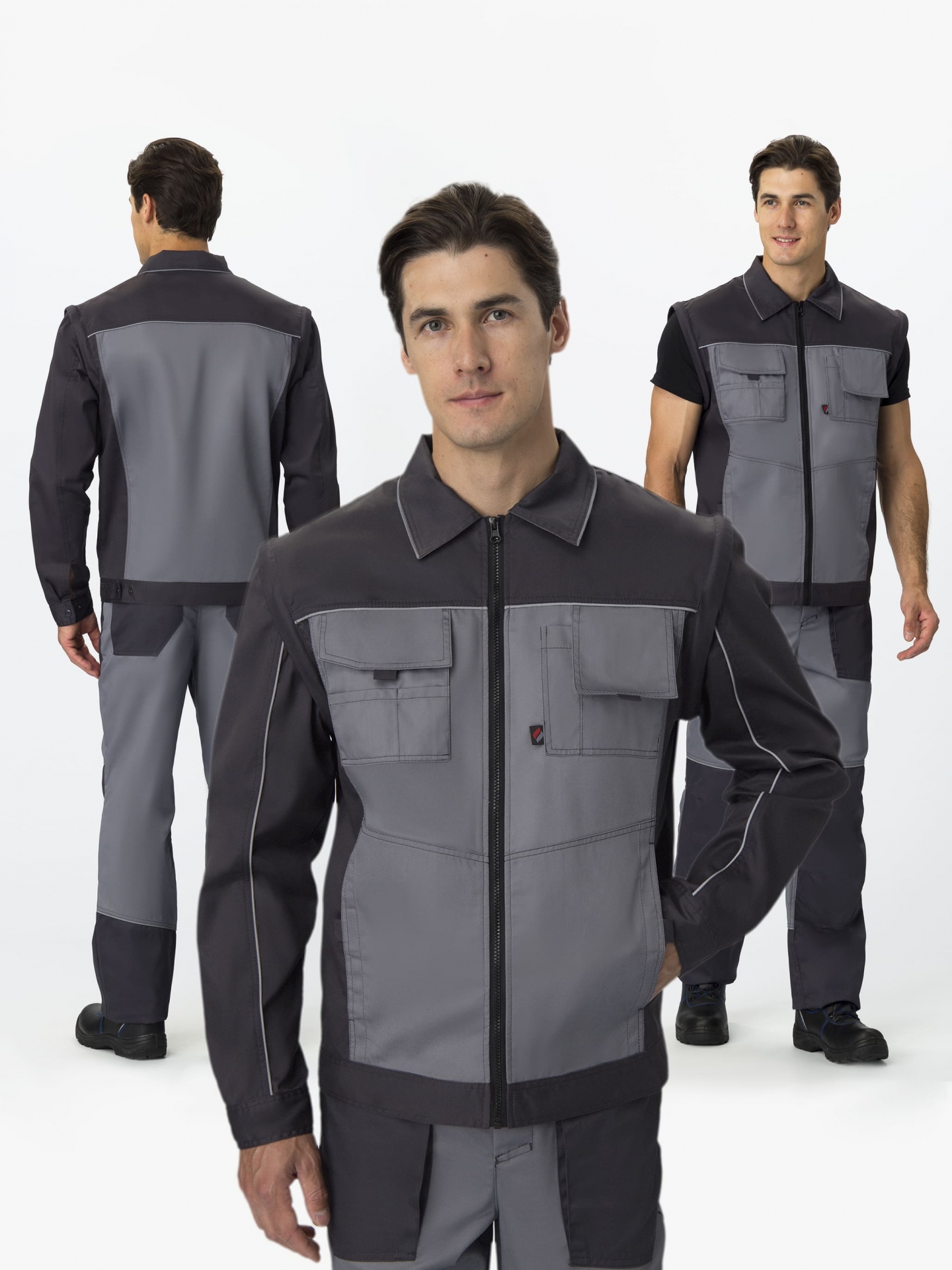 Куртка "Лидер" идеально комплектуется с брюками и полукомбинезоном "Лидер", создавая полноценный костюм, который обеспечивает комплексную защиту и единый стиль для профессионалов различных сфер деятельности.