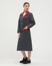 - Удобство. Костюмы, куртки и брюки не стесняют движений. Прямой крой позволяет свободно двигаться на протяжении всей рабочей смены, дополнительный объем в области колен обеспечивает легкость и комфорт. Объем в области талии можно регулировать под себя.