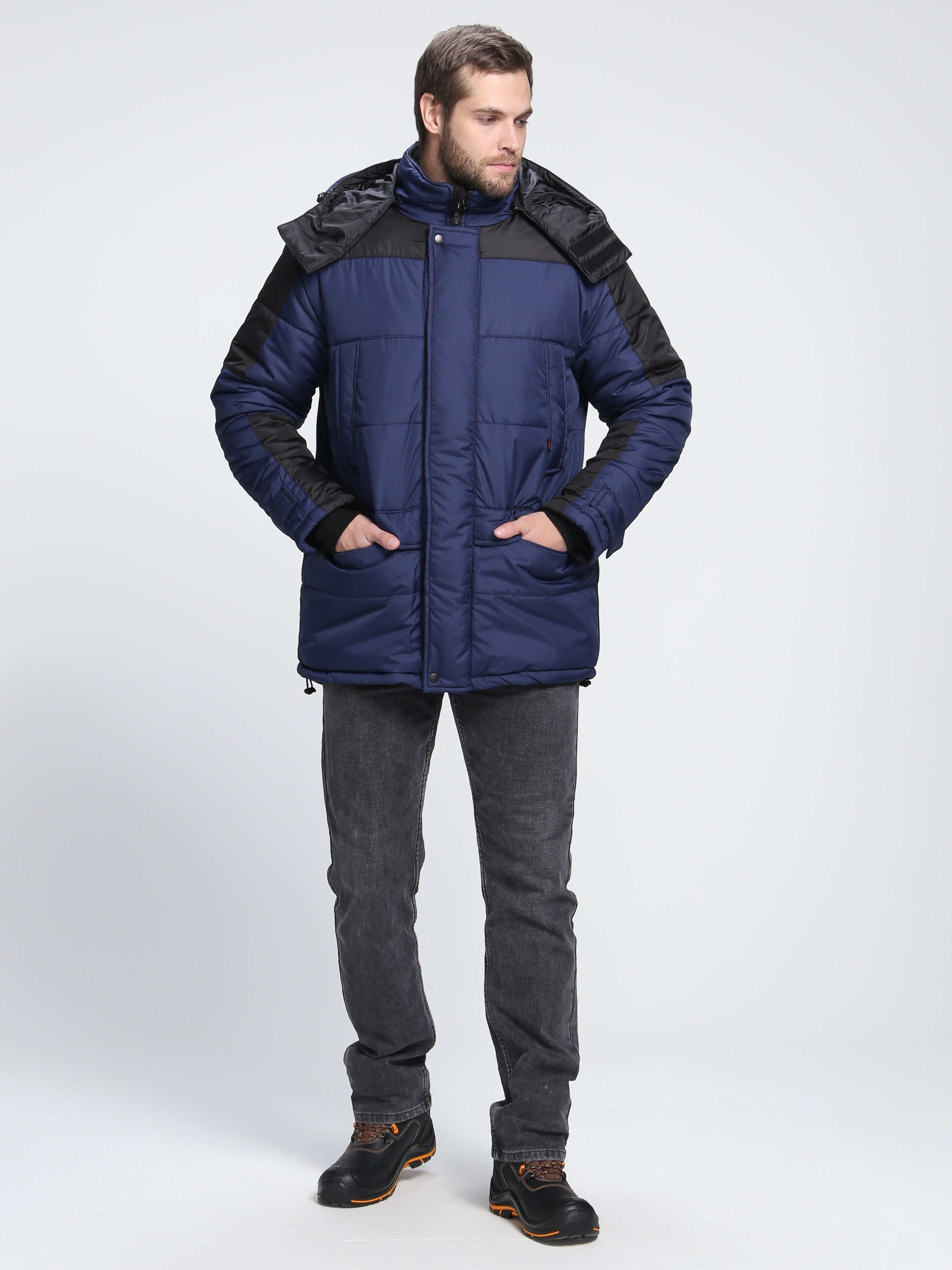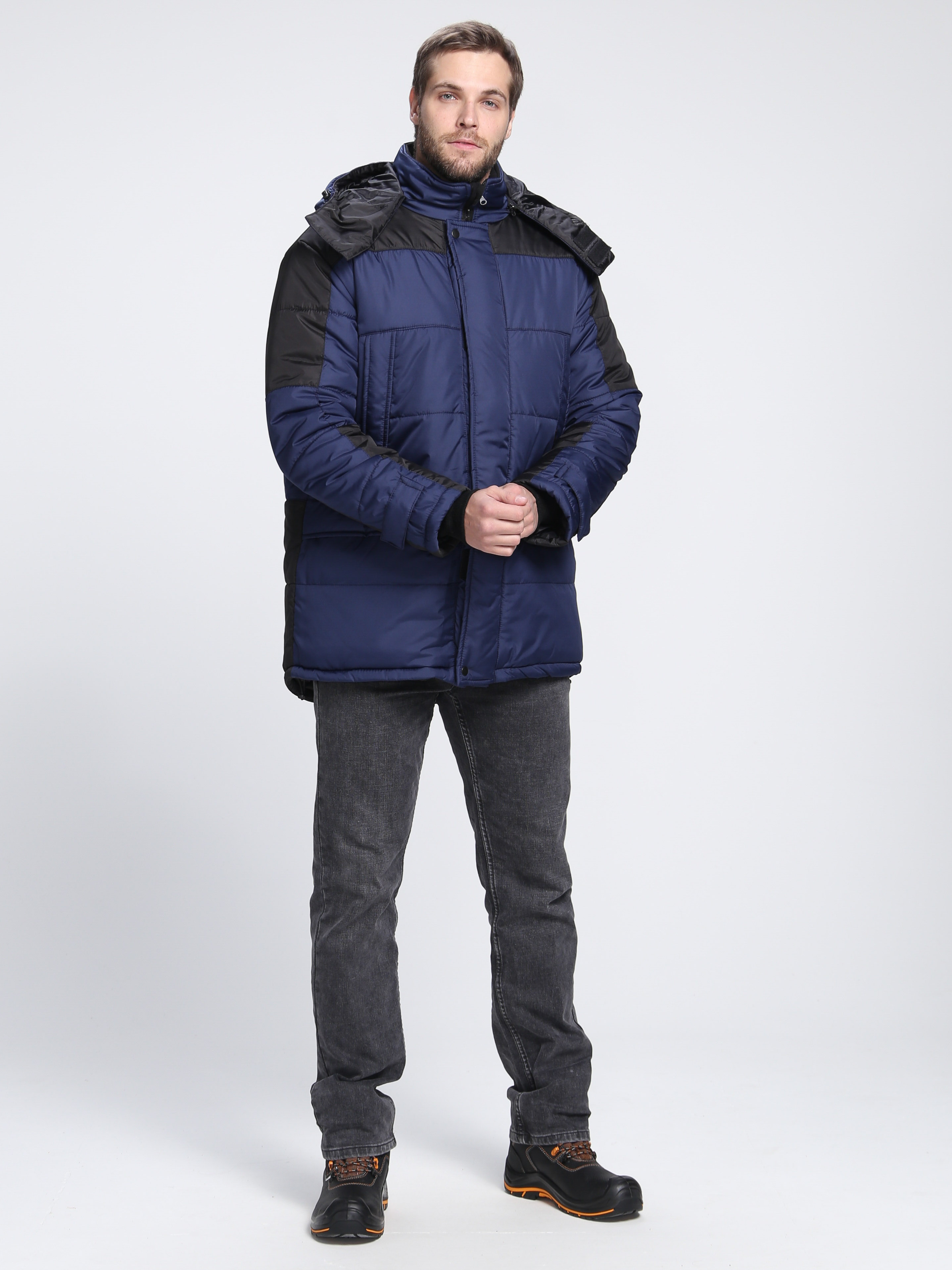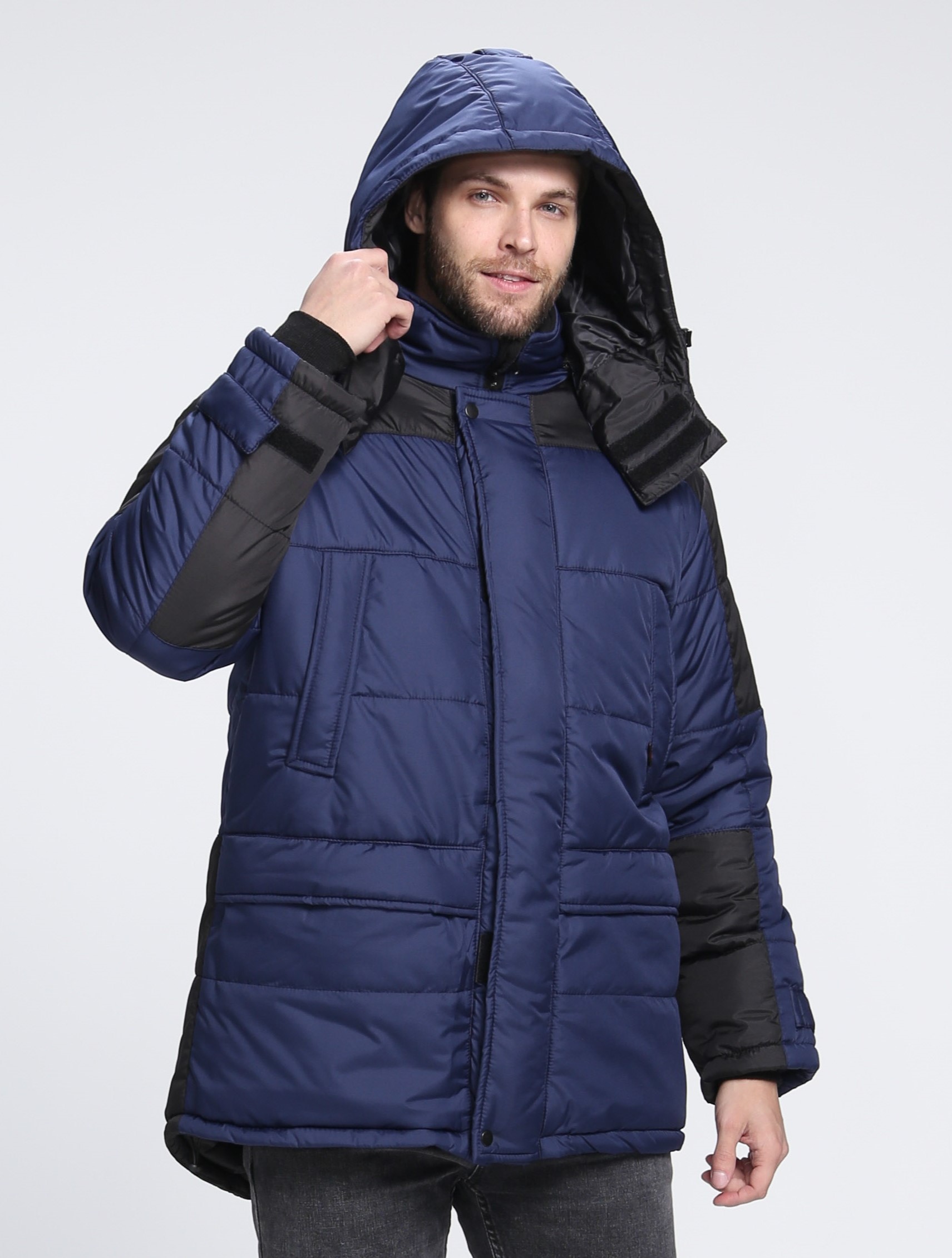 Мужская зимняя куртка «Европа» предназначена для комфортной работы при низких температурных режимах. Куртка рабочая зимняя замечательно садится по фигуре и не пропускает холод: низ куртки утягивается эластичным шнуром, на рукавах предусмотрены трикотажные манжеты, удлиненная фигурная спинка закрывает поясницу. Спецодежда производится из ткани с влагоотталкивающей пропиткой, благодаря чему отлично защищает от осадков. Плотный слой утеплителя и ветрозащитная планка на кнопках надежно сохраняют тепло, а воротник-стойка с нижним воротником из флиса укрывают шею. Объемный утепленный капюшон закрывает голову, регулируется шнуром по лицевому вырезу, может отстегиваться. Для хранения документов предусмотрен нагрудный карман на молнии формата А4, в дополнительных боковых карманах удобно хранить личные вещи.