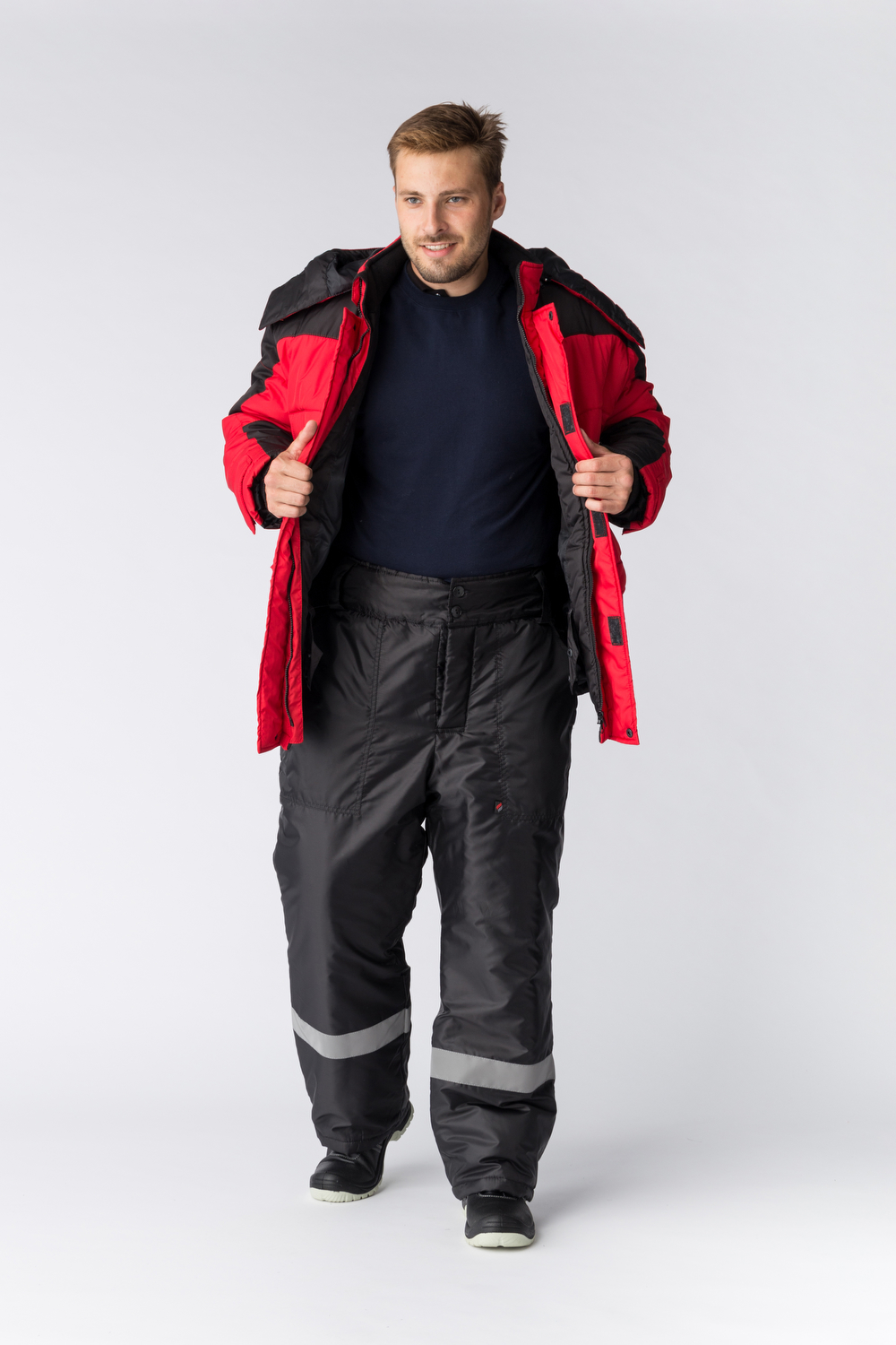 Мужская зимняя куртка «Европа» предназначена для комфортной работы при низких температурных режимах. Куртка рабочая зимняя замечательно садится по фигуре и не пропускает холод: низ куртки утягивается эластичным шнуром, на рукавах предусмотрены трикотажные манжеты, удлиненная фигурная спинка закрывает поясницу. Спецодежда производится из ткани с влагоотталкивающей пропиткой, благодаря чему отлично защищает от осадков. Плотный слой утеплителя и ветрозащитная планка на кнопках надежно сохраняют тепло, а воротник-стойка с нижним воротником из флиса укрывают шею. Объемный утепленный капюшон закрывает голову, регулируется шнуром по лицевому вырезу, может отстегиваться. Для хранения документов предусмотрен нагрудный карман на молнии формата А4, в дополнительных боковых карманах удобно хранить личные вещи.
