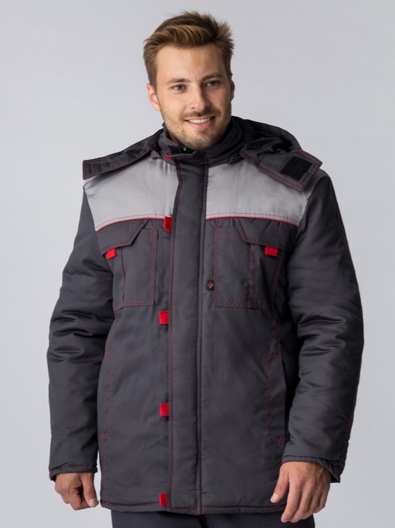Куртка зимняя Флофт Премиум (тк.Смесовая,240), т.серый/св.серый/красный