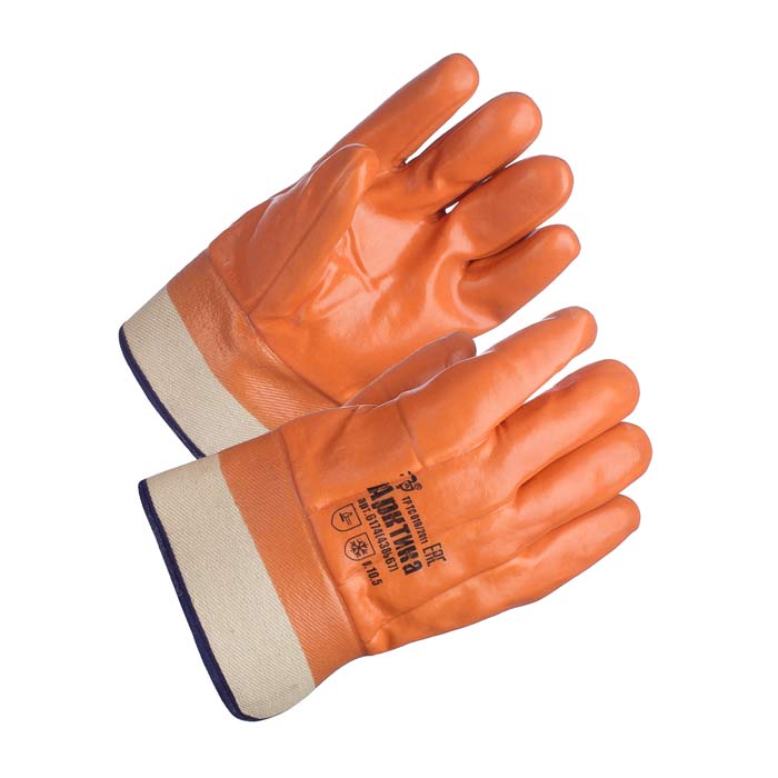 Утепленные прочные перчатки с ПВХ покрытием для защиты от механических воздействий и химических факторов.