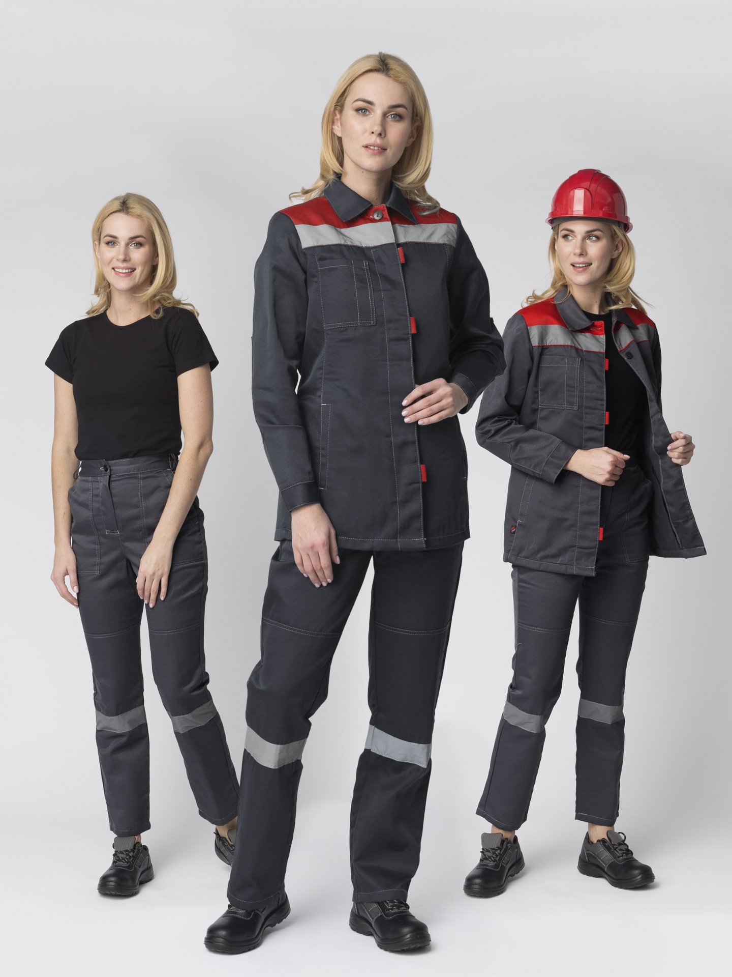 Костюм женский Веснис-1 СОП К. (тк.Смесовая,210) брюки, т.серый/красный