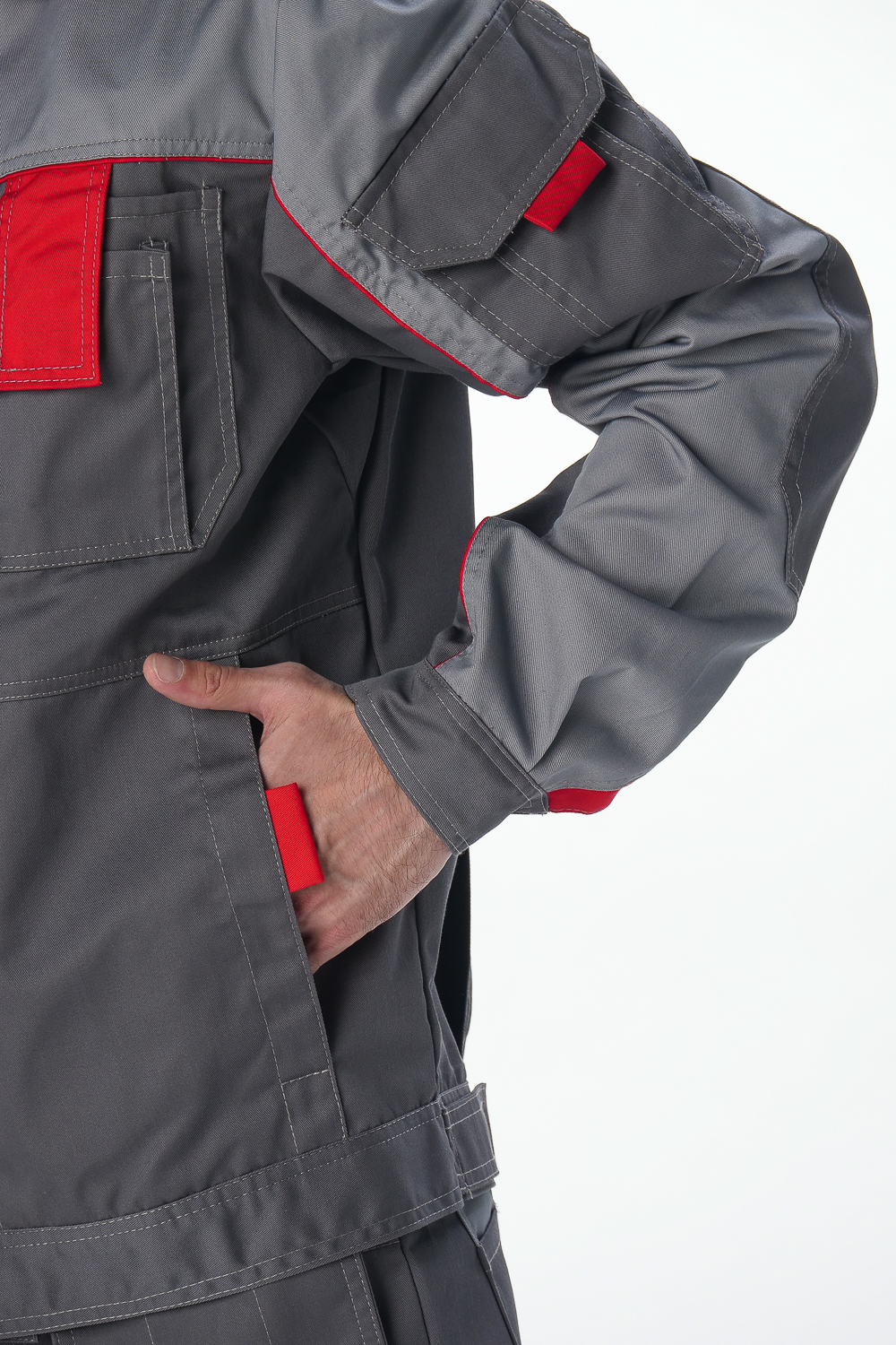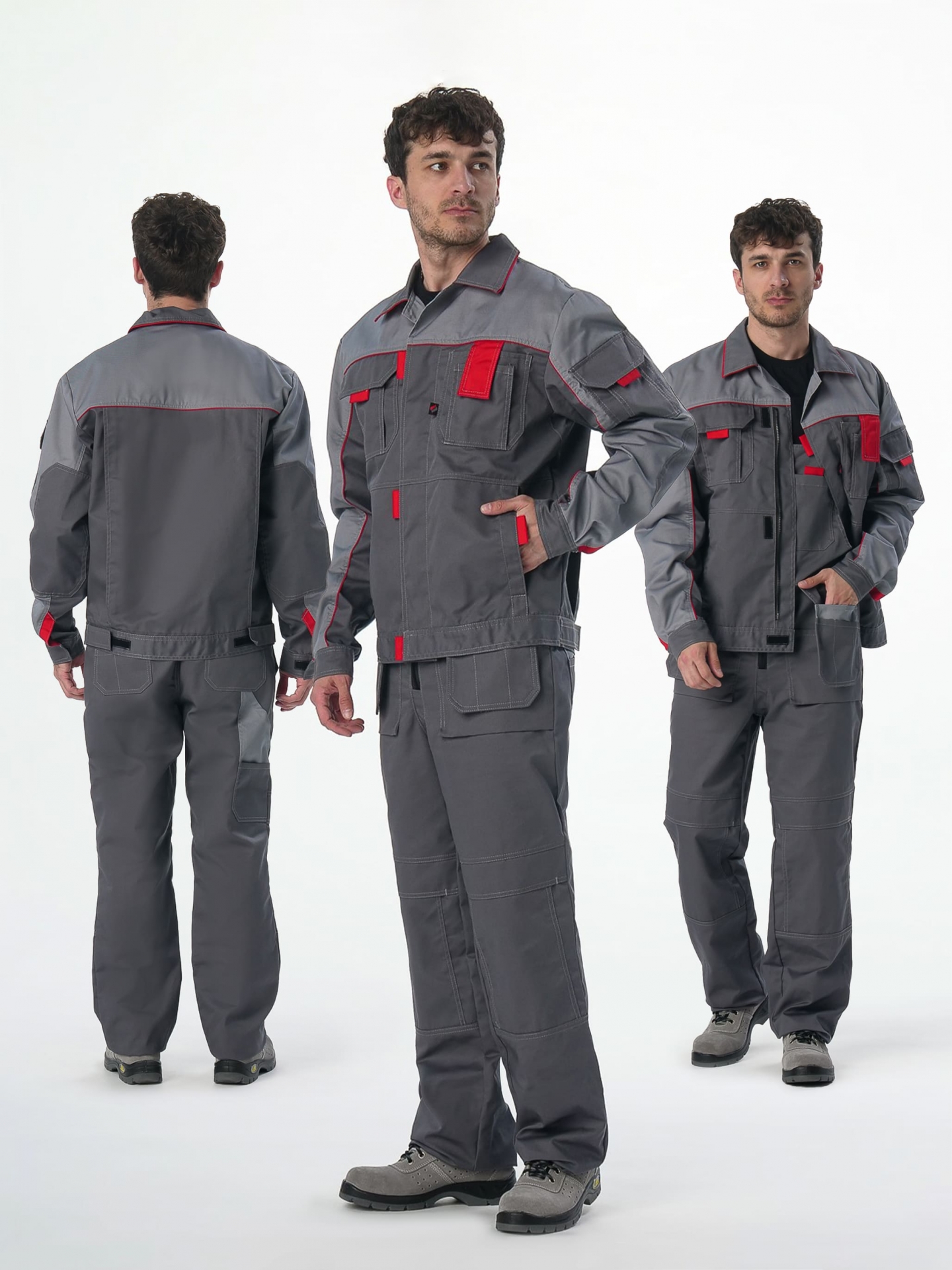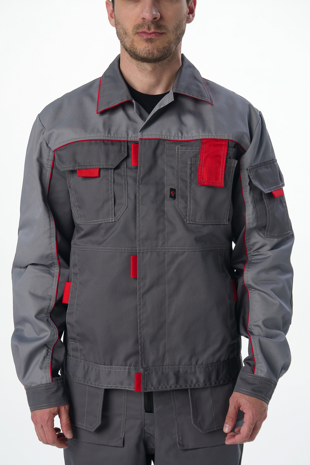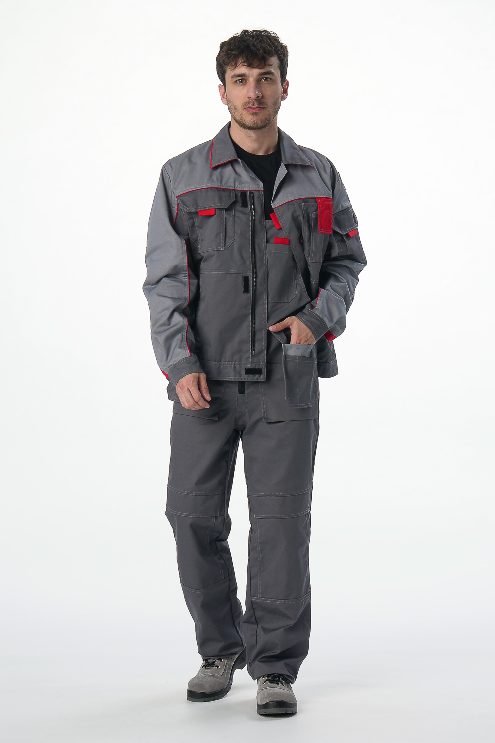 Костюм Драга-2 (тк.Балтекс,240) п/к, т.серый/св.серый/красный