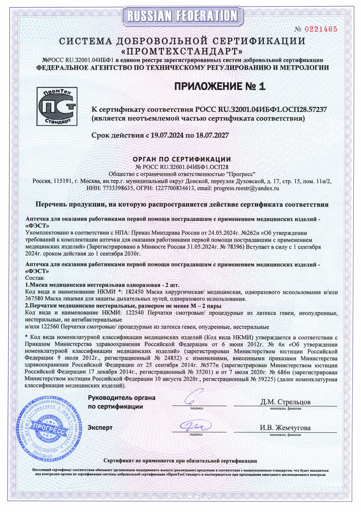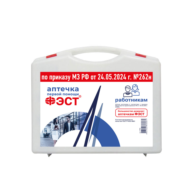 Аптечка изготовлена в соответствии с приказом Министерства здравоохранения РФ от 24.05.2024 г. №262н