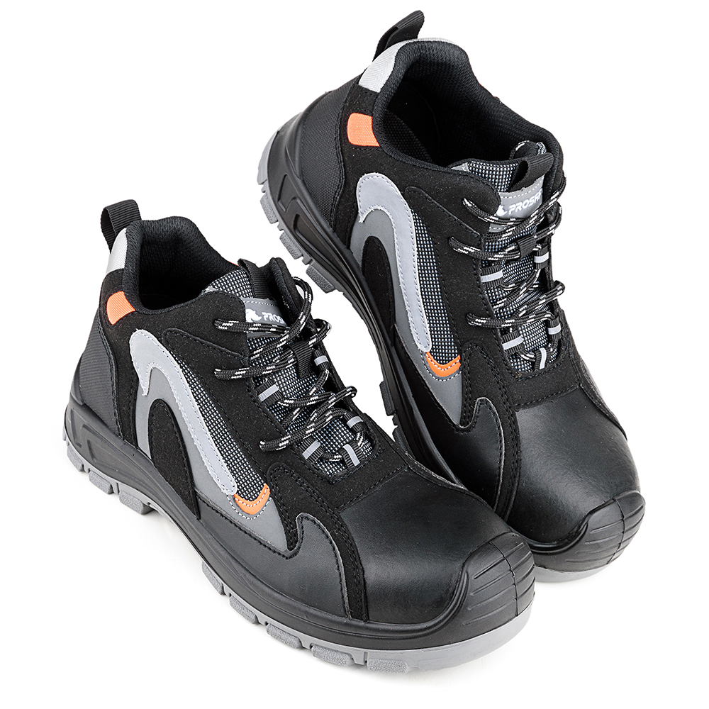 Кроссовки Prosafe серии profi с комбинированным верхом из натуральной кожи с микрофиброй дополнены оригинальными светоотражающими элементами и предназначены для защиты ног от общих производственных загрязнений и механических воздействий. Гигроскопичная дышащая подкладка из сетчатого материала поддерживает оптимальную температуру внутри. В модели предусмотрена текстильная вкладная формованная стелька. Шнуровка обеспечивает комфортную адаптивную фиксацию. Светоотражающие элементы повышают видимость работников в темное время суток и на неосвещенной территории. Подошва - двухслойная, маслобензостойкая, литьевого метода крепления. Промежуточный слой изготовлен из ПУ с внутренней амортизирующей вставкой в пяточной части подошвы, способной гасить ударные нагрузки при ходьбе. Нижний ходовой слой подошвы изготовлен из износостойкого ТПУ. Композитный подносок обеспечивает защиту пальцев стопы от механических повреждений ударной прочностью до 200Дж. Глубина протектора ходового слоя подошвы составляет 3,5 мм.
