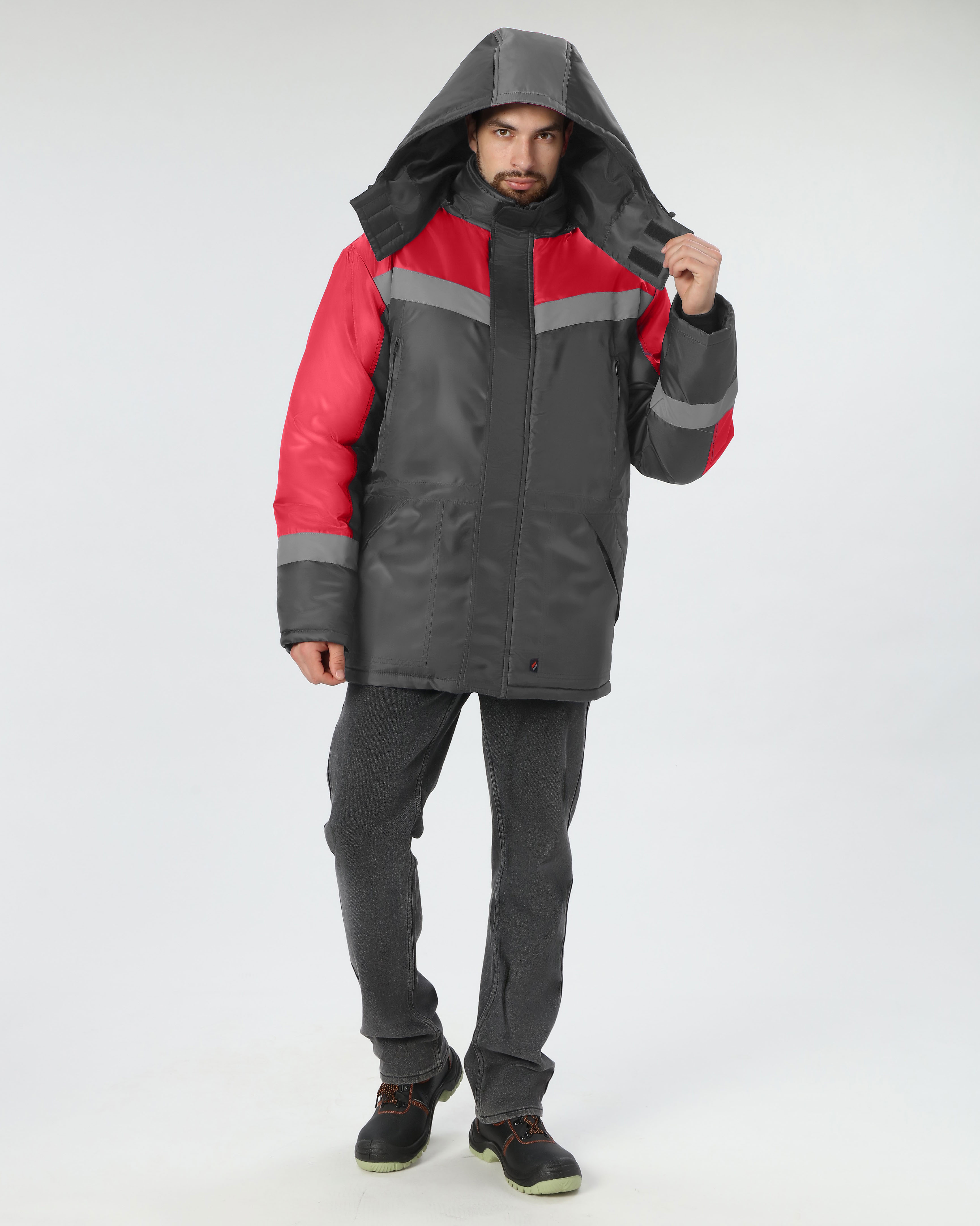 Куртка зимняя Лигор СОП (тк.OxLine,90), т.серый/красный