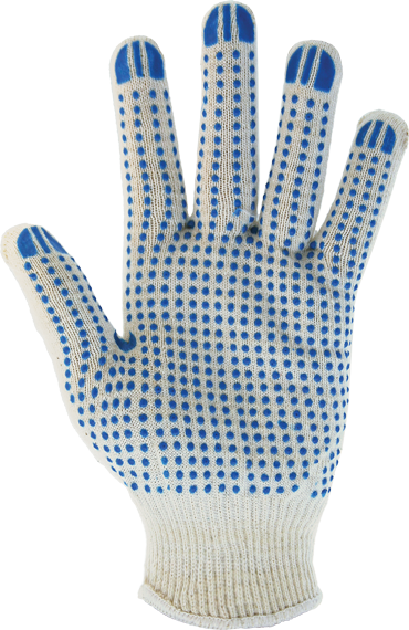 Универсальные хлопчатобумажные перчатки с ПВХ покрытием. Защита рук от механических воздействий и общих производственных загрязнений. Состав пряжи х/б - 50%, п/э - 50%