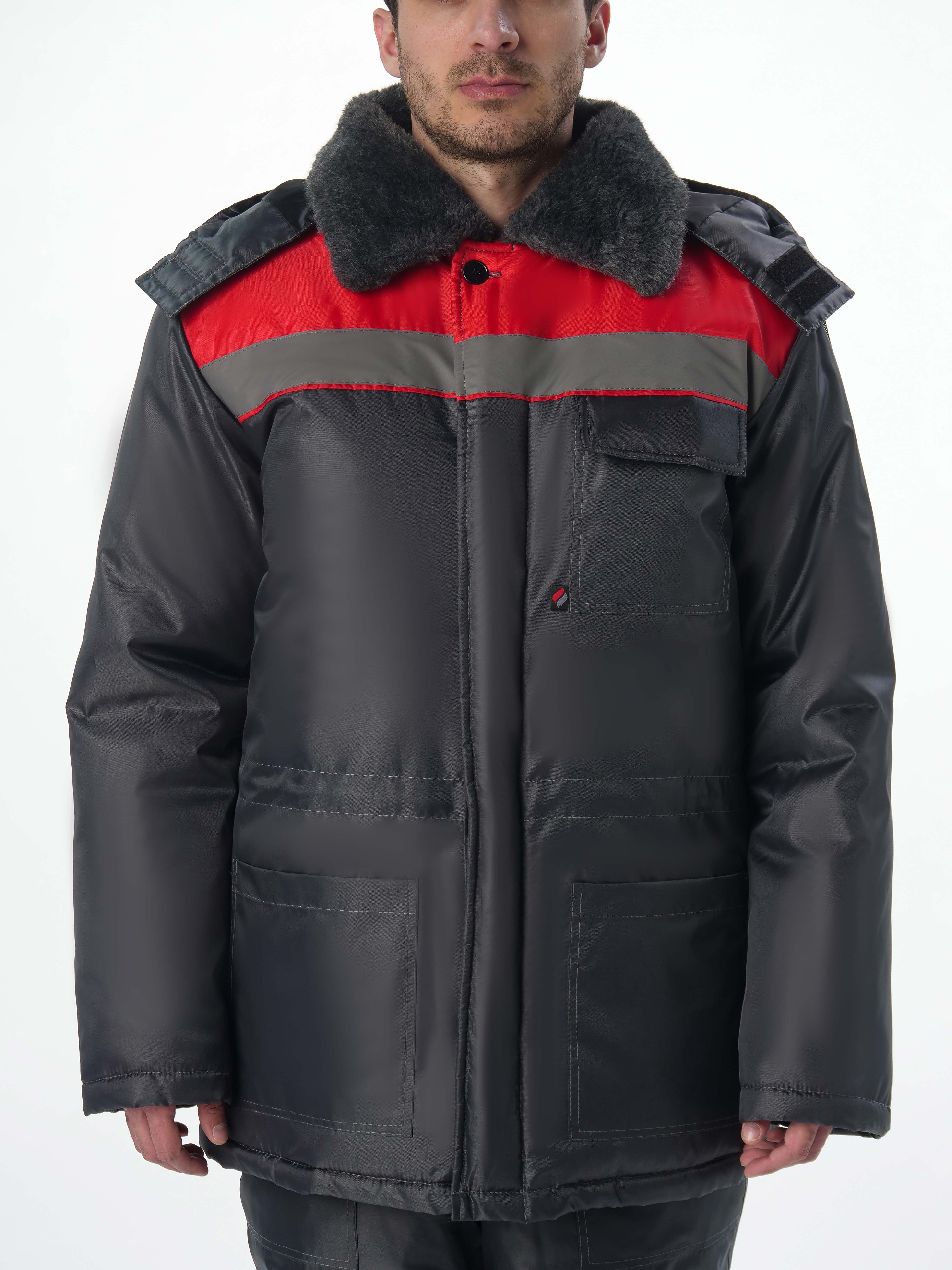 Костюм зимний на пуговицах Квайл-1 СОП (тк.Оксфорд,90) брюки, т.серый/красный