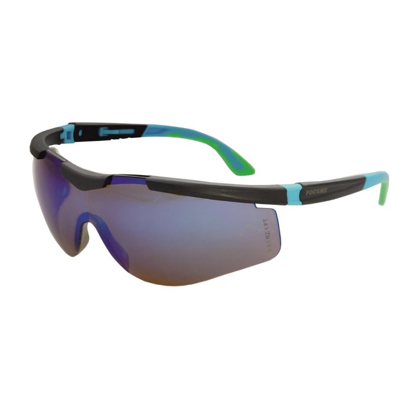 - защитное стекло из зеркального поликарбоната, обеспечивает защиту от высокоскоростных частиц (низкоэнергетический удар), абразива, УФ-излучения, устойчиво к химическим веществам, растворам кислот и щелочей