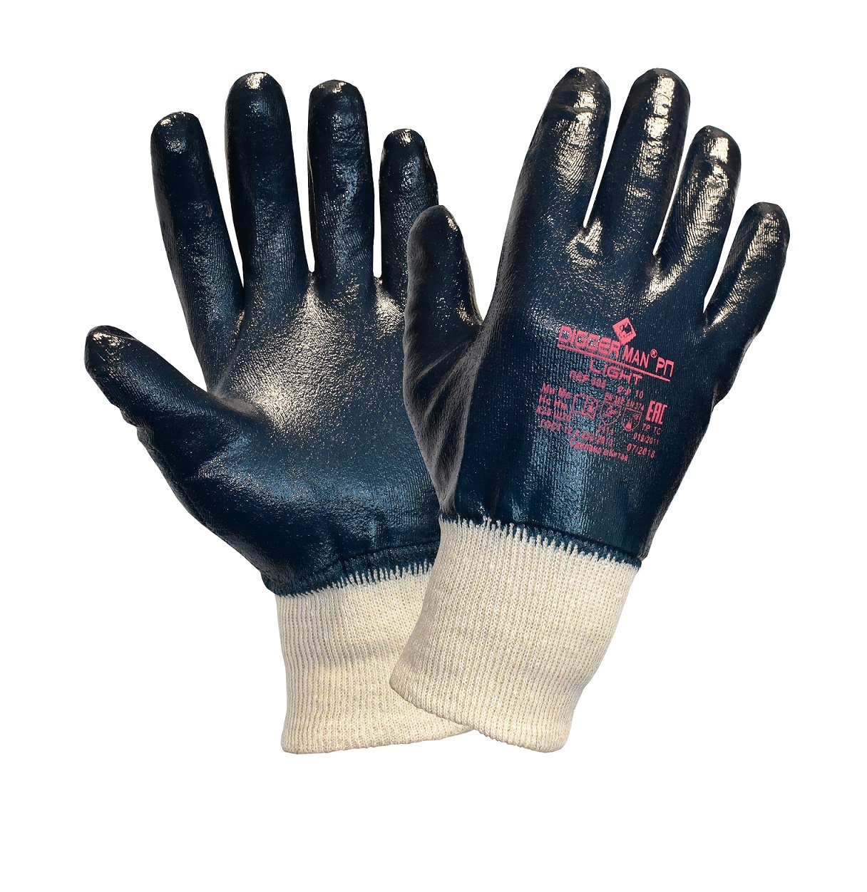 Перчатки нитриловые DIGGERMAN LIGHT РП облегченные – перчатки с легким нитриловым покрытием предназначены для защиты рук от механических воздействий (истирание, порез, прокол). 100% хлопковая основа interlock (интерлок) с полным нитриловым покрытием, манжет — трикотажная резинка. Высокая чувствительность ладони и пальцев, ограниченная стойкость к агрессивным жидкостям, водостойкое покрытие. Высокое сопротивление истиранию, стойкость к разрыву, ограниченная стойкость к проколу и порезу. Рекомендованы для выполнения общих строительных работ, проведения погрузочно-разгрузочных работ.