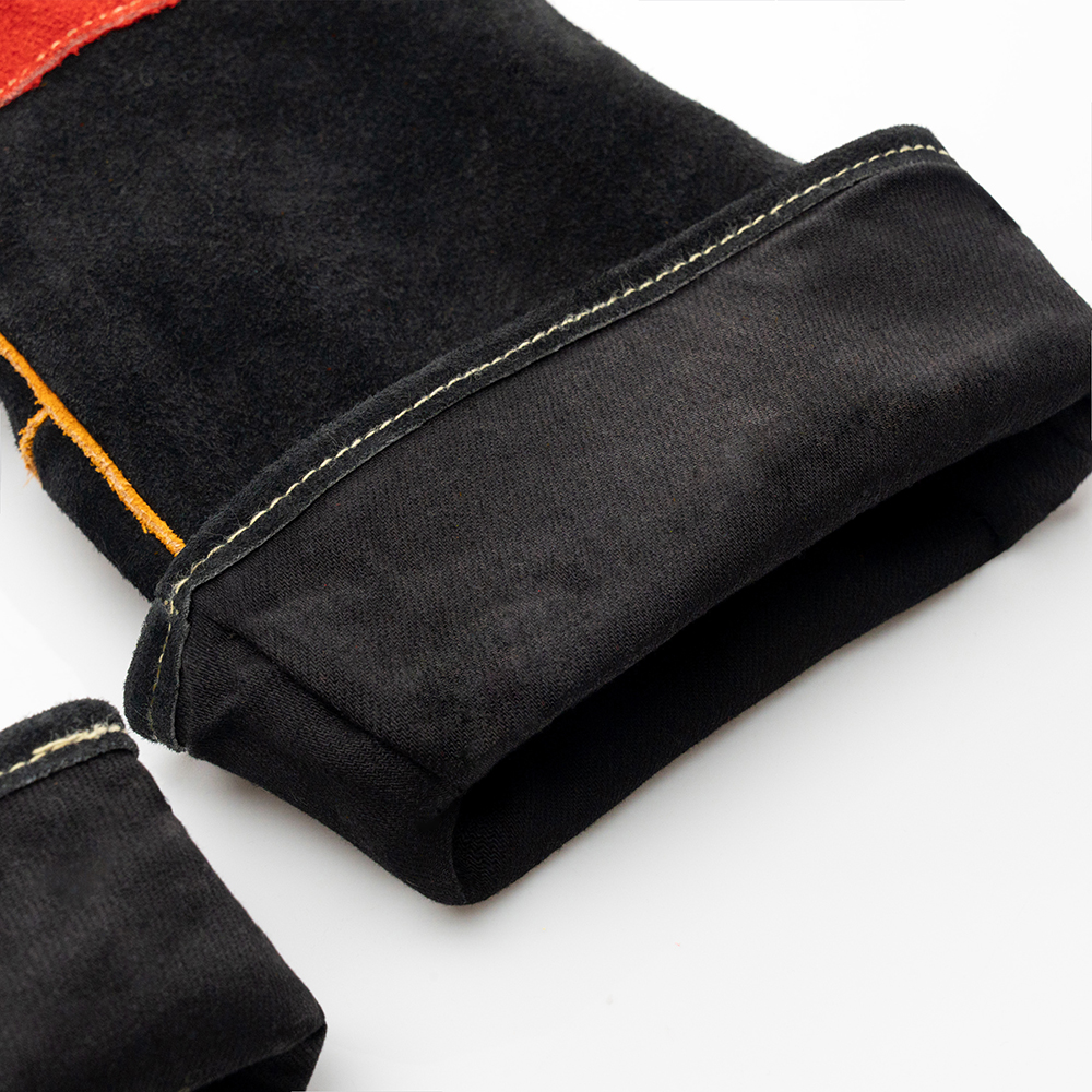 Особопрочные перчатки сварщика (краги) для защиты от механических воздействий и повышенных температур из цельного спилка, пятипалые, с подкладкой из джинсы и флиса.