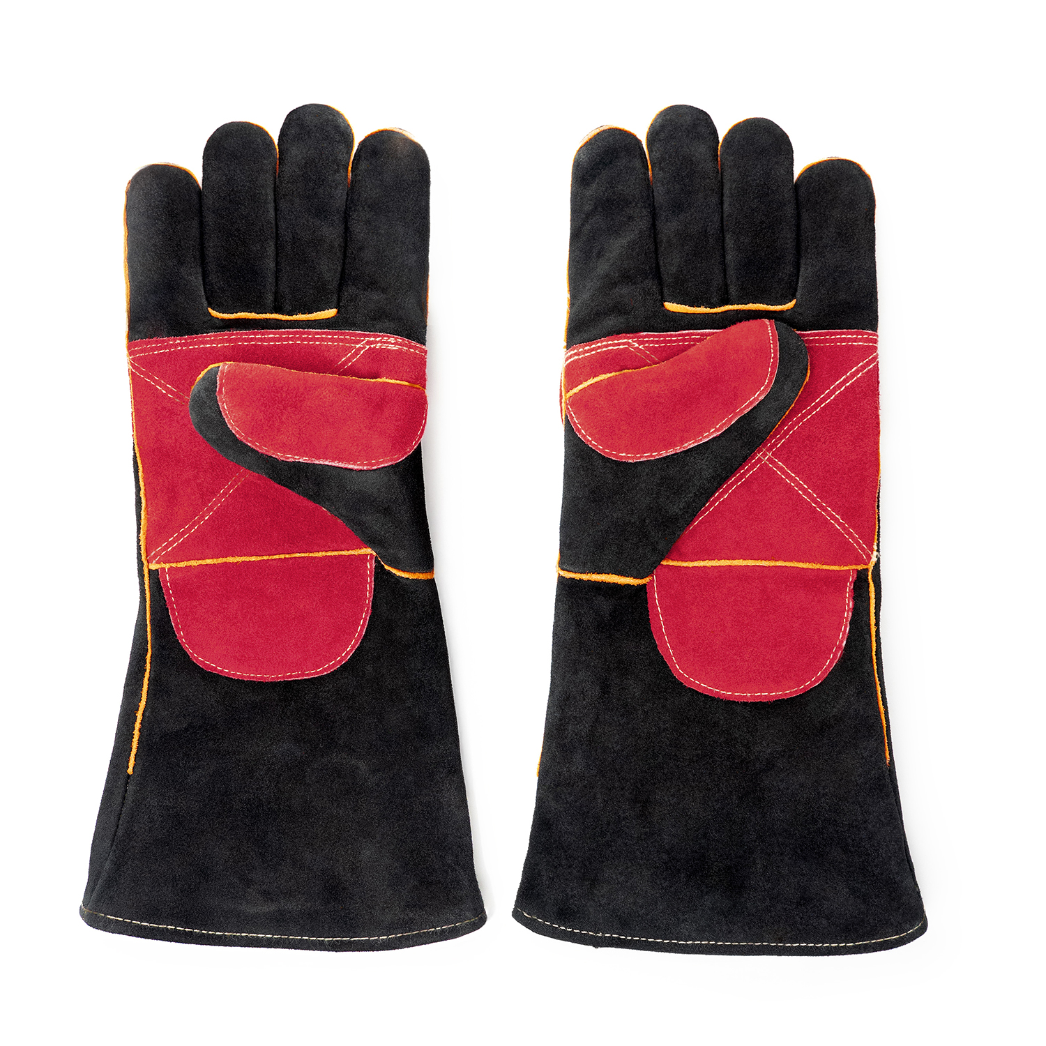 Перчатки (краги) спилковые усиленные термозащитные ProfLineLeader, черный/красный
