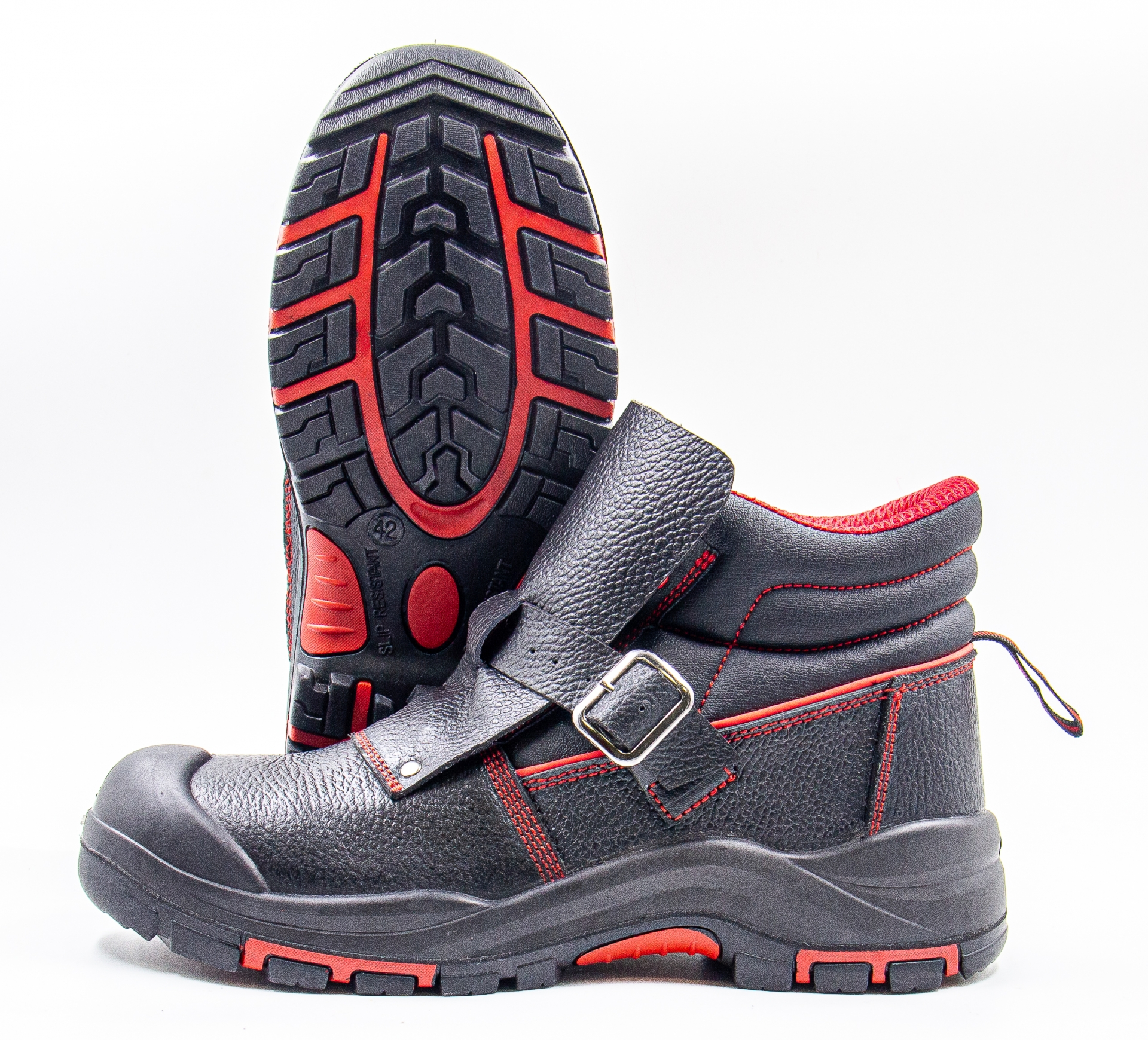 Ботинки сварщика серии FIRE на двухслойной ПУ/НИТРИЛ подошве с повышенными защитными свойствами. Укомплектованы металлическим подноском и металлической антипрокольной стелькой. Комфорт обеспечивают амортизатор в пяточной части ботинка. Мягкий кант защищает щиколотку. Защитная накладка защищает от брызг металла и искр.