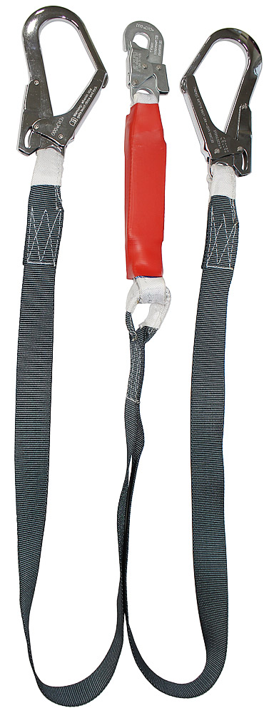 Строп аАд К50+К20 NL - страховочный строп, двойной (двуплечий) из полиэфирной ленты с амортизатором, двумя большими монтажными и одним соединительным карабином