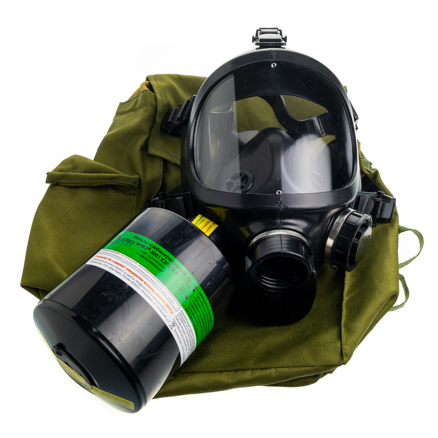 Противогаз фильтрующий «Бриз-3301 (ППФ)» марки K3Р3 R D с лицевой частью «Бриз-4301М (ППМ)» категория 2 и с соединительной трубкой обеспечивает защиту органов дыхания, глаз и кожи лица от: