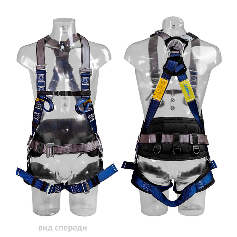 Индивидуальное защитное средство от падения с высоты. Привязь используется только в сочетании с одним из стропов с амортизатором: «Ампаро-430®», «Ампаро-440®» или «Ампаро-422®» или с регулируемым стропом «Ампаро-410®», «Ампаро-420®». Универсальная регулировка, эргономичный кушак для спины, широкие энергопоглощающие ножные лямки. Одно заднее, два боковых D-образных кольца, две крепежные петли спереди, которые допускают безопасное перемещение с использованием стопорного устройства- самохвата «Ампаро-500®». Петли также используются в качестве альтернативы крепления стропа с амортизатором за заднее D-образное кольцо или за короткий строп.