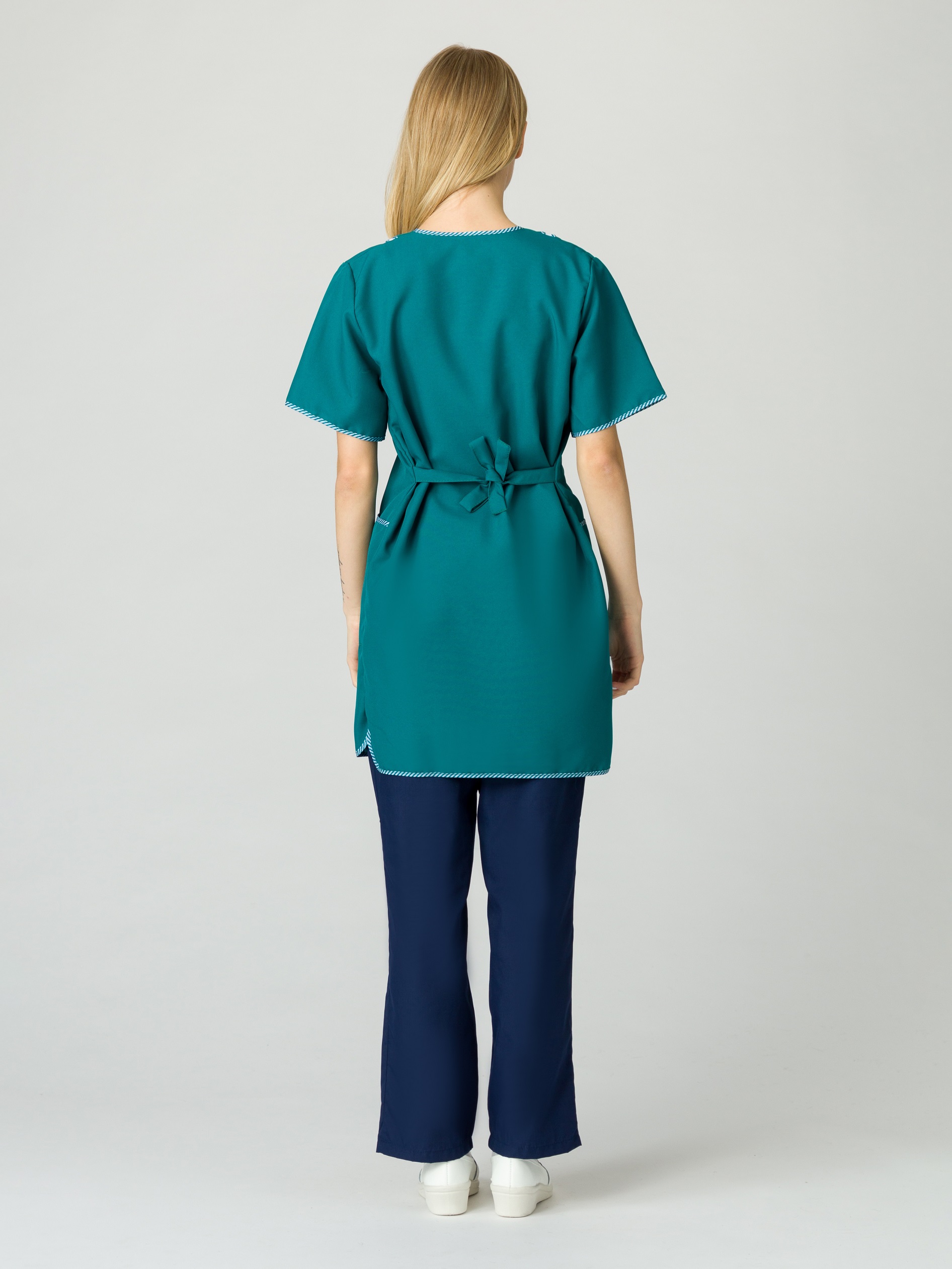 Халат рабочий женский «Сакура» отличается качественным исполнением и эстетичным внешним видом. Халат изготовлен в соответствии с ГОСТ, надежно защищает от общих производственных загрязнений и механических воздействий. Плотная ткань халата устойчива к многократным стиркам, сохраняет форму и цвет. Рабочая одежда дополняется вшивным поясом на завязках, который подчеркивает и регулирует линию талии. Короткий женский халат длиной до колена отлично сидит по фигуре, не стесняет движения. Благодаря контрастному принту и двойному отложному воротничку модная спецодежда выглядит привлекательно и современно. Халат застегивается на молнию, предусматривает наличие вместительных боковых карманов для хранения нужных мелочей. Если Вы ищете халат рабочий большого размера, то также обратите внимание на данную модель, т.к. она учитывает все потребности женщин разной комплекции.