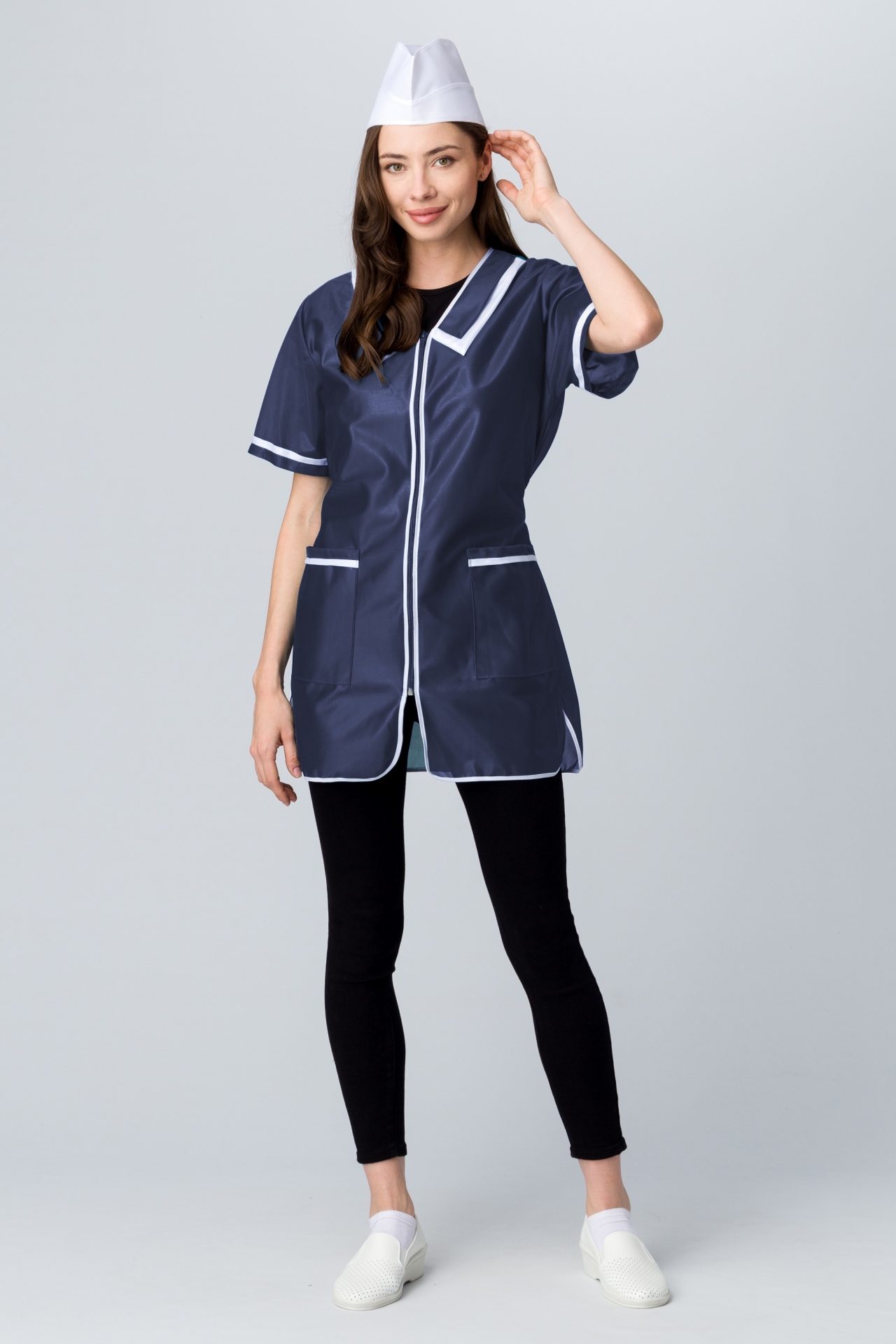 Халат женский на молнии короткий рукав (тк.Нейлон), синий