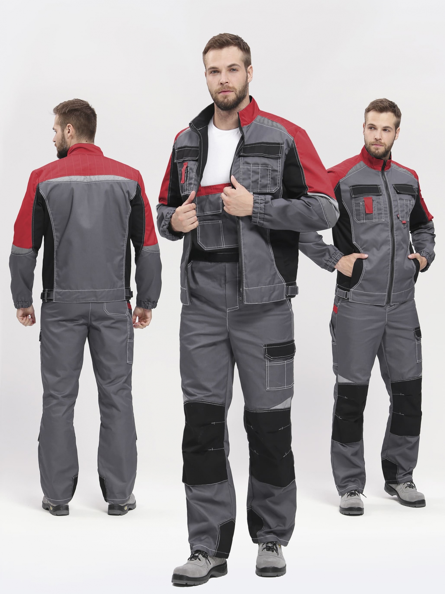 Костюм Формула (тк.Смесовая,240) п/к, серый/красный/черный