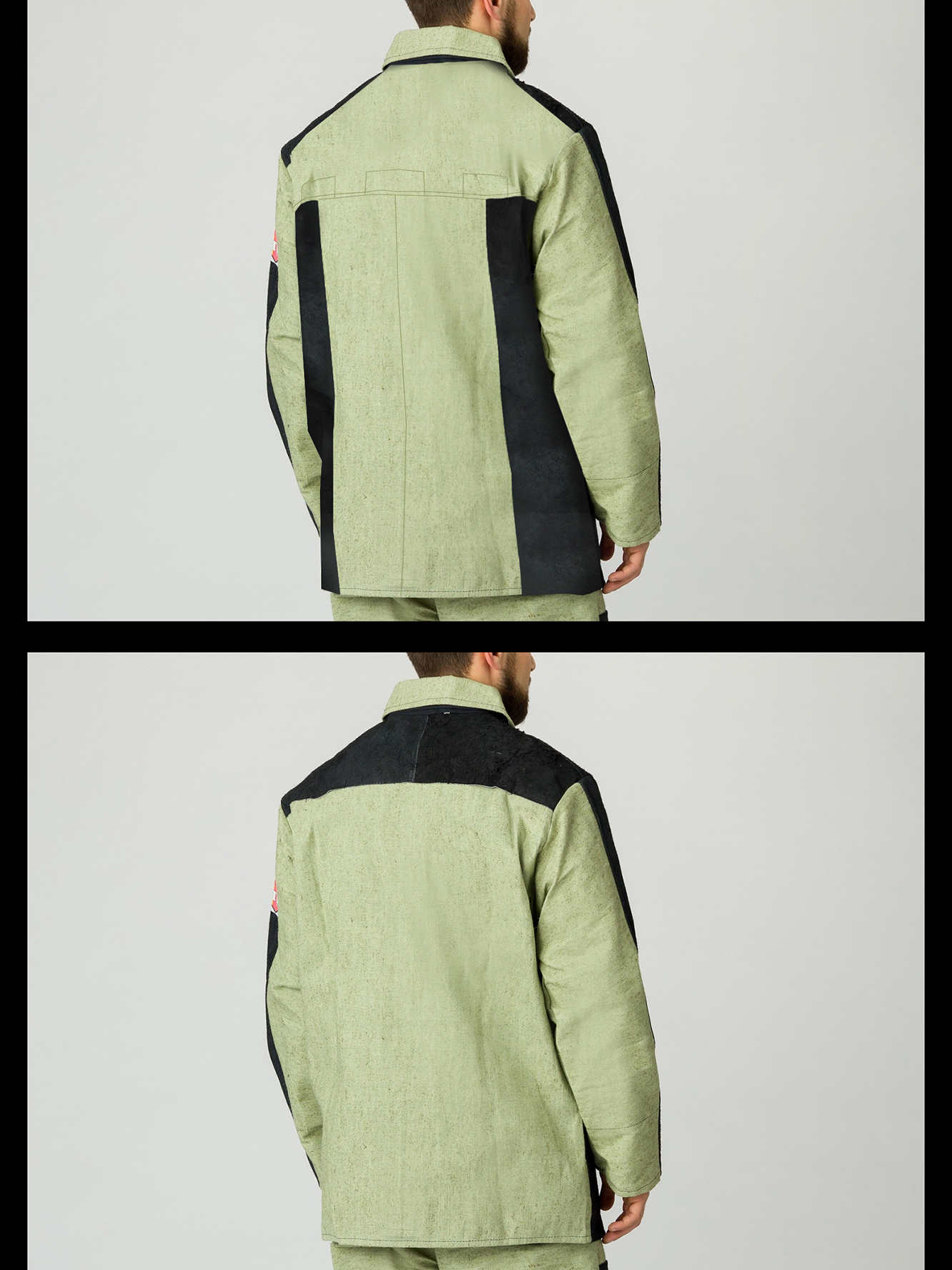Костюм может быть с разными видами кокетки на спине (спилок и брезент), смотрите фото №4.