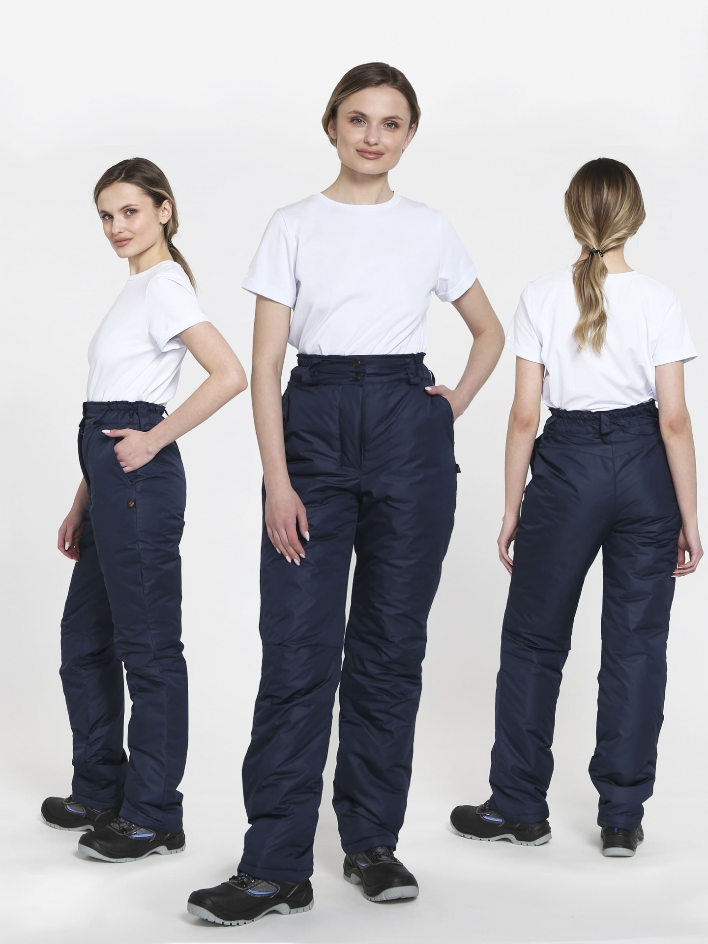 Брюки женские зимние «Сакрин» подходят для рабочей деятельности и повседневной носки при низких температурах до -25 ℃. Зимние брюки производятся из плотной ткани «таслан», отличаются легкостью, прочностью и длительным периодом эксплуатации. Мембранное покрытие водонепроницаемостью 8000 мм и влагоотталкивающая пропитка не дают промокнуть даже в сильный снегопад или дождь, отлично защищают от загрязнений. Высокий пояс брюк закрывает спину от сквозняков и препятствует переохлаждению поясничного отдела позвоночника, а утеплитель синтепон замечательно сохраняет тепло. Зимние штаны женские дополнены вытачками на коленях и в области талии, благодаря чему не стесняют движения. Пояс брюк регулируется по объему с помощью пат на пуговицах и обеспечивает комфортную посадку по фигуре. Для хранения личных вещей предусмотрены передние боковые карманы.