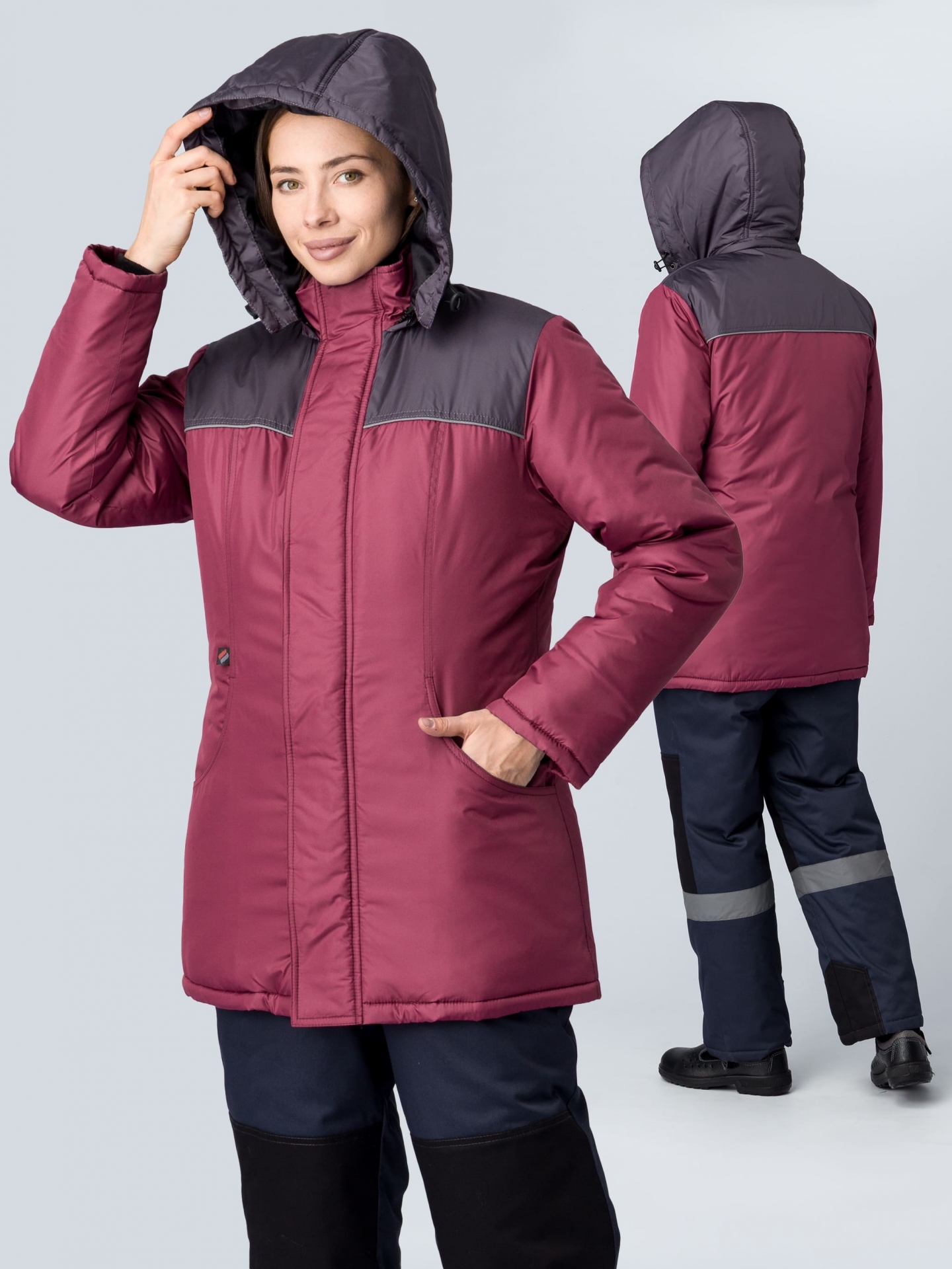 Куртка зимняя женская Сакрин (тк.Дюспо,80), бордовый/т.серый