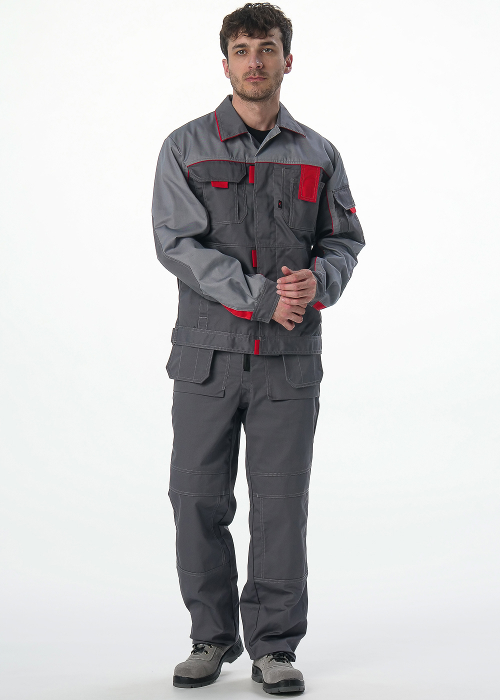 Костюм Драга-1 (тк.Балтекс,240) брюки, т.серый/св.серый/красный