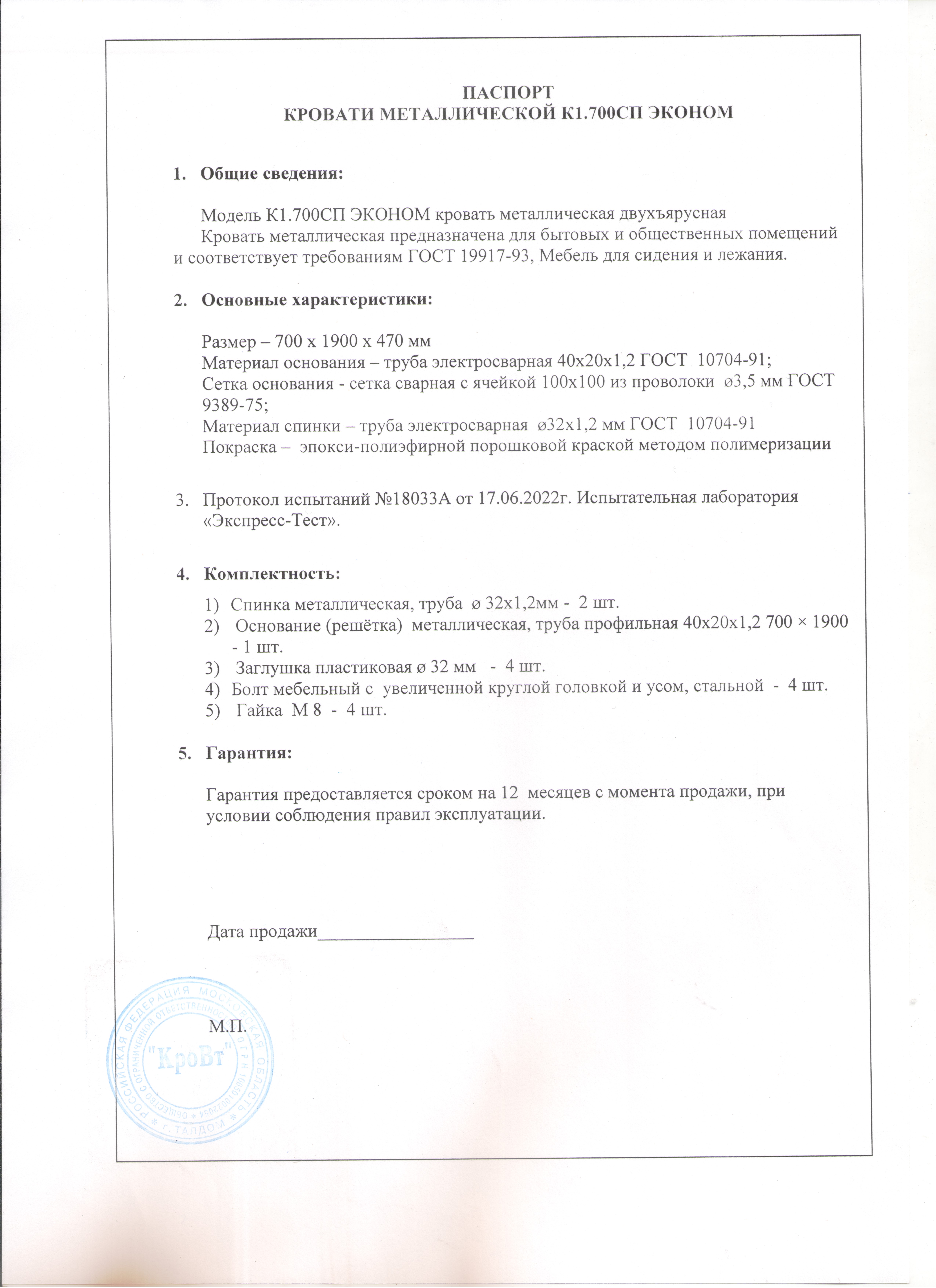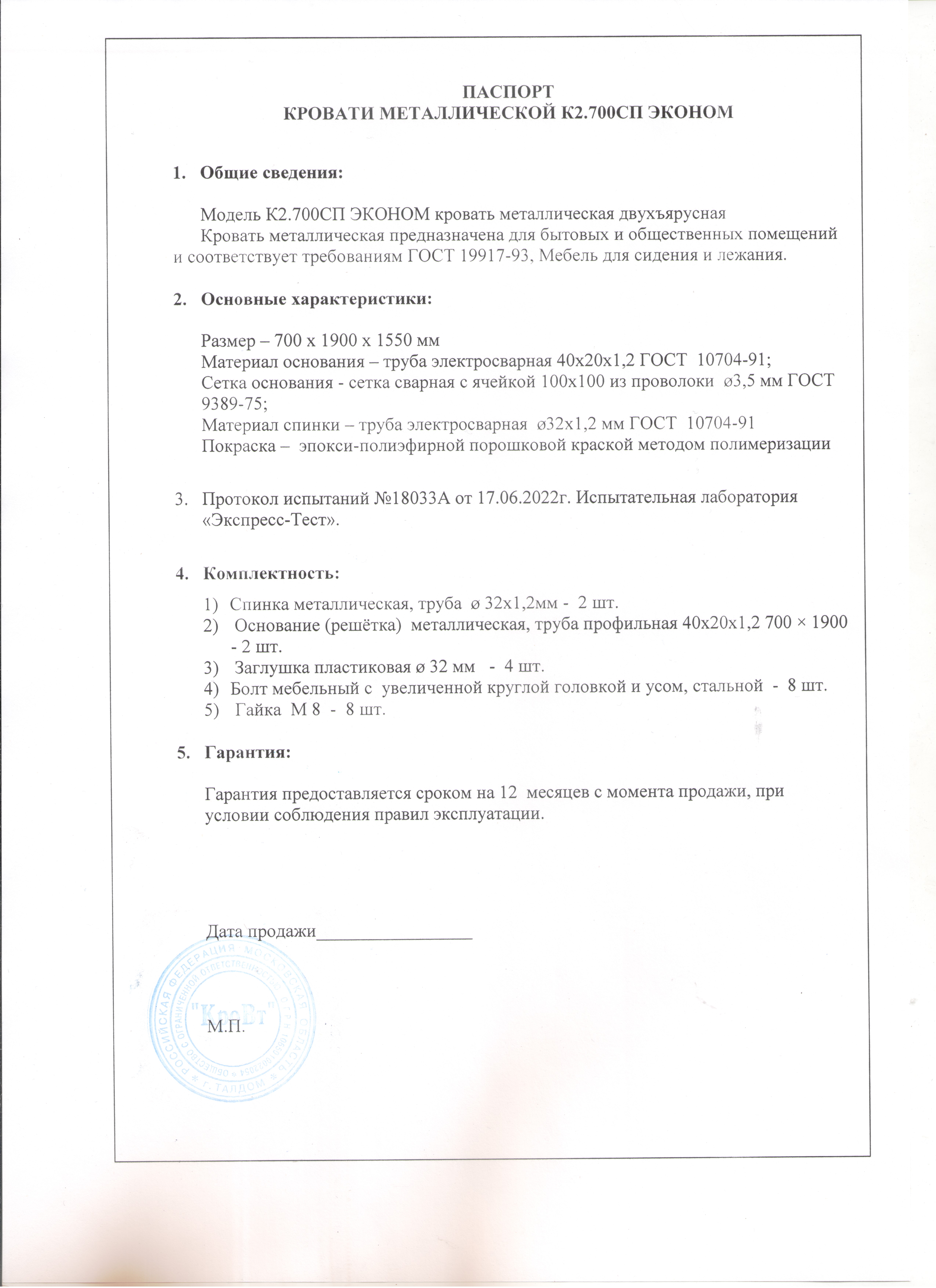 Кровать металлическая двухъярусная сетка (К-2.700СП 100х100 эконом)