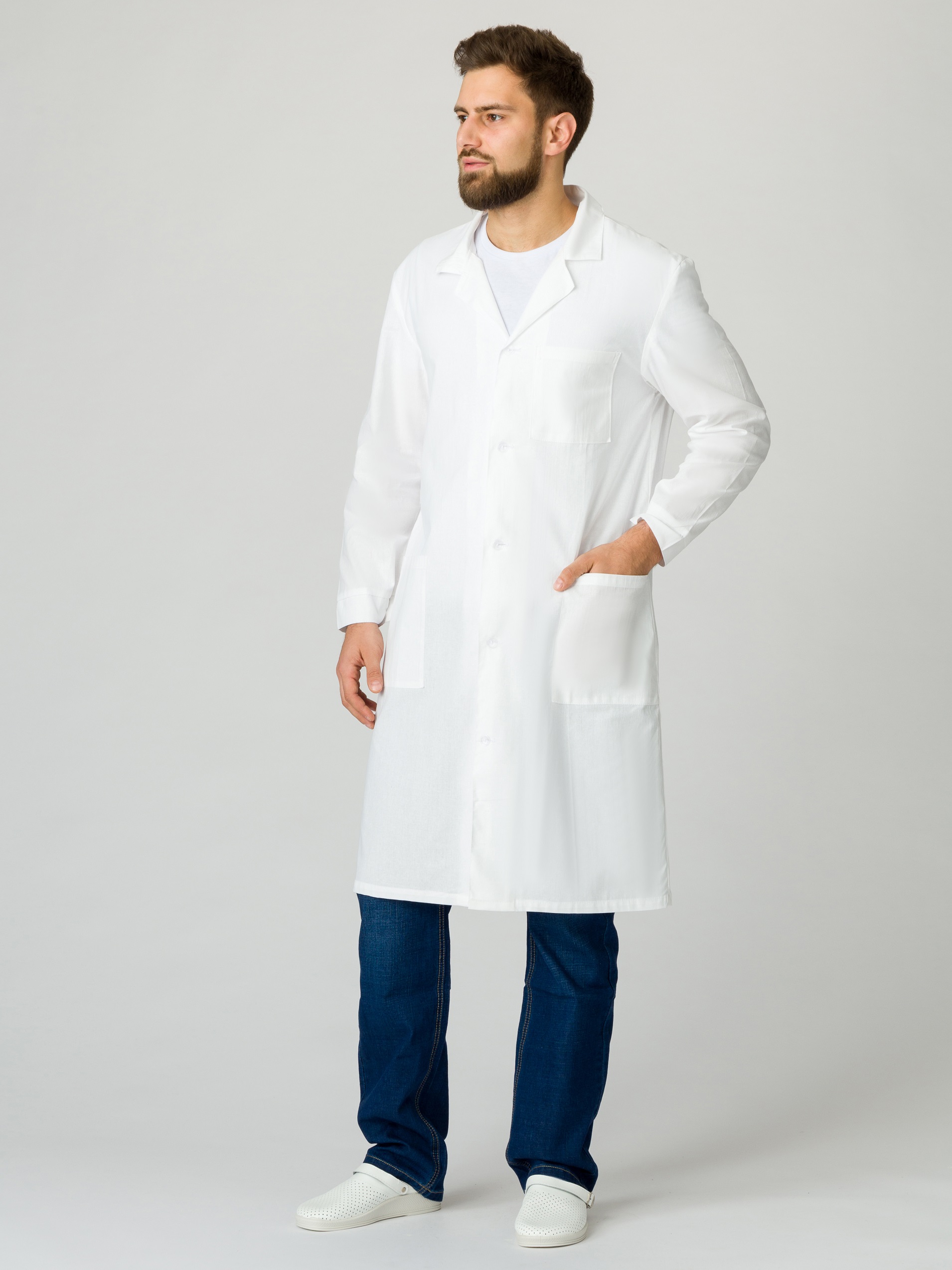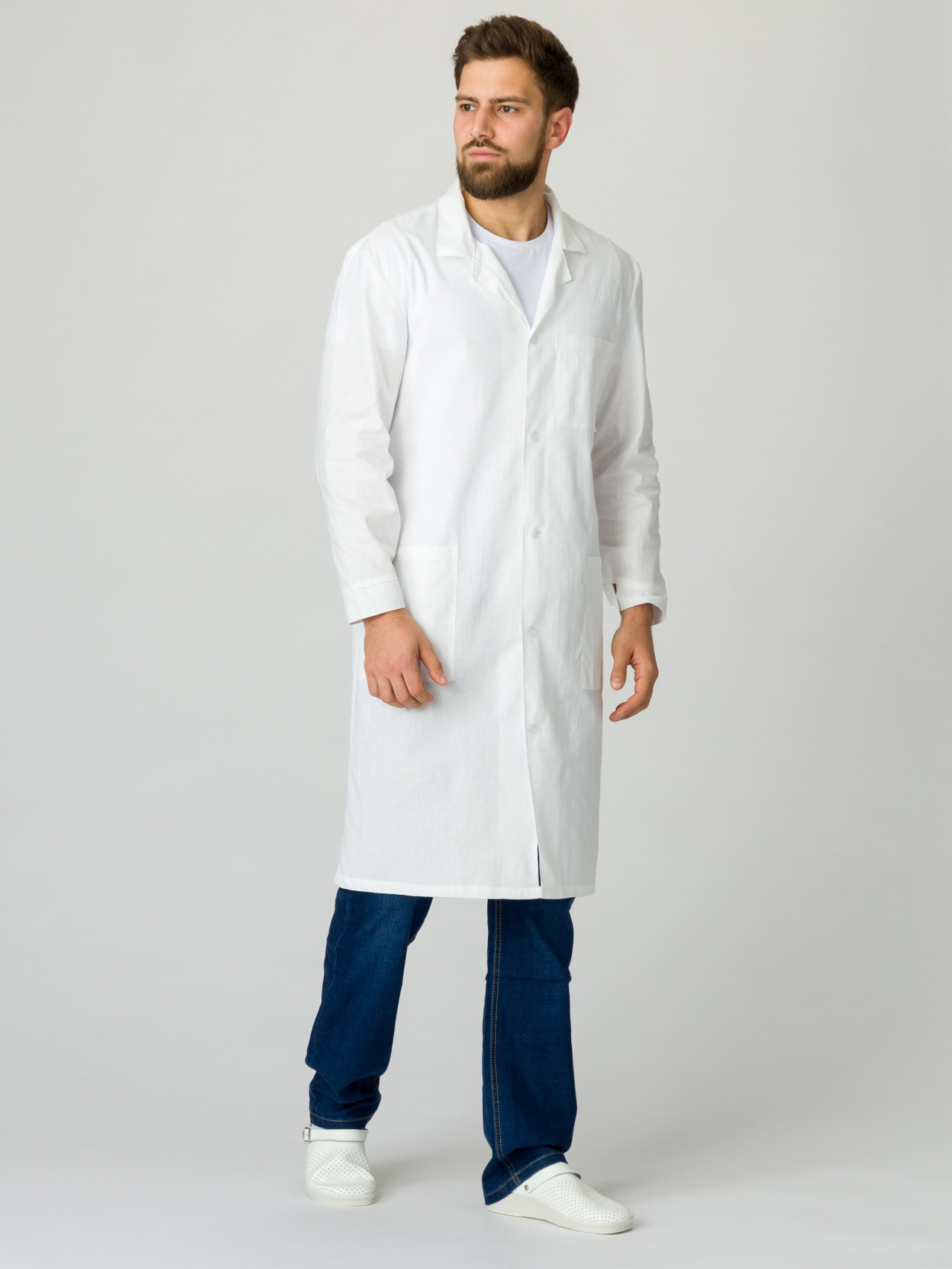 Халат мужской MedLine Марк (тк.Смесовая,120), белый/т.синий
