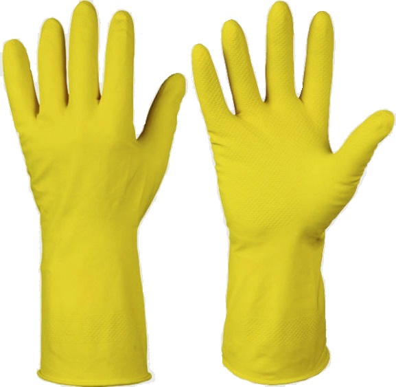 Прочные хозяйственные перчатки из натурального латекса с внутренним флокированием (напыление хлопка) для комфортной эксплуатации и поглощения пота.