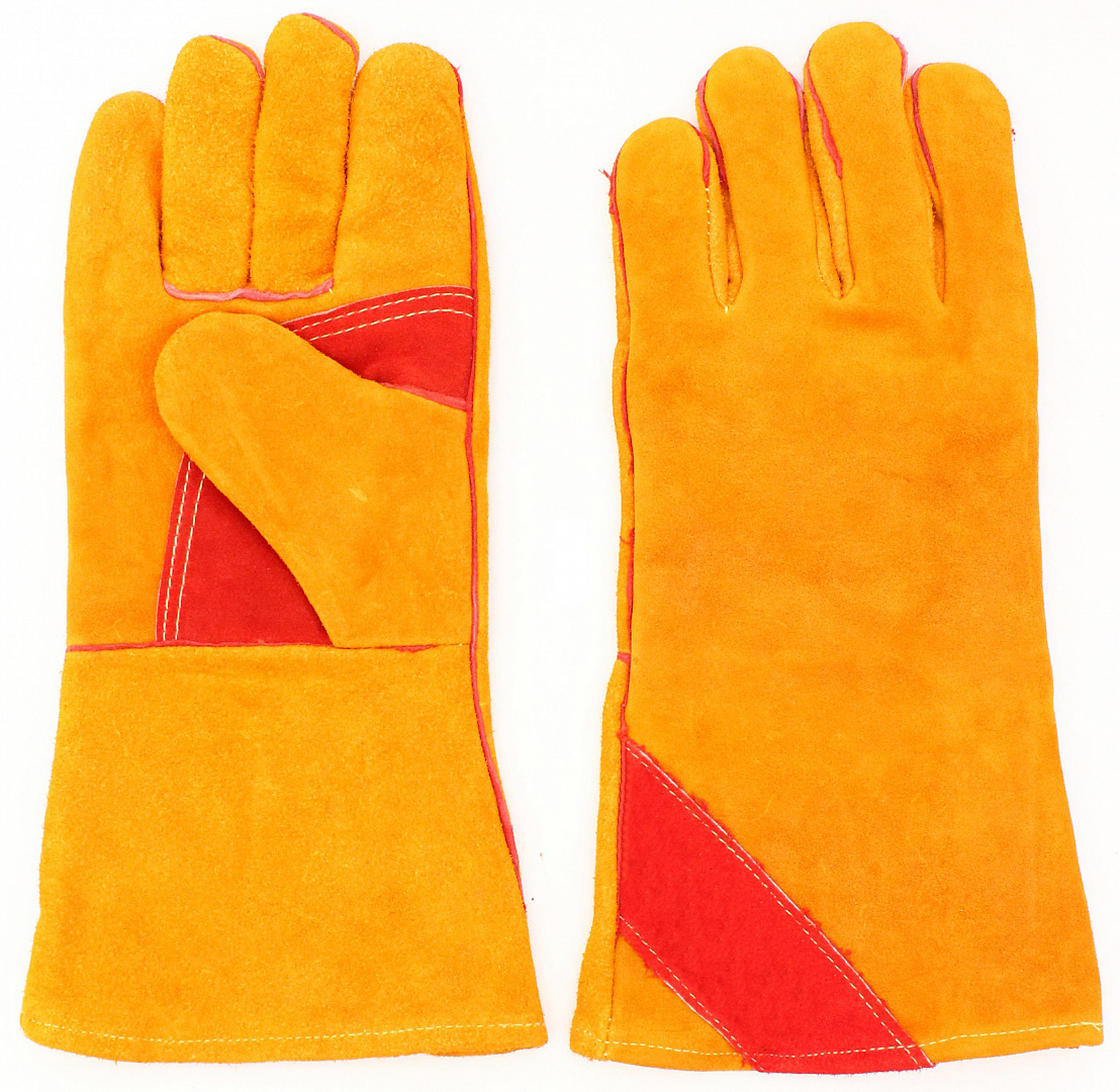 Краги спилковые желтые с красным усилением с подкладкой нить Кевлар