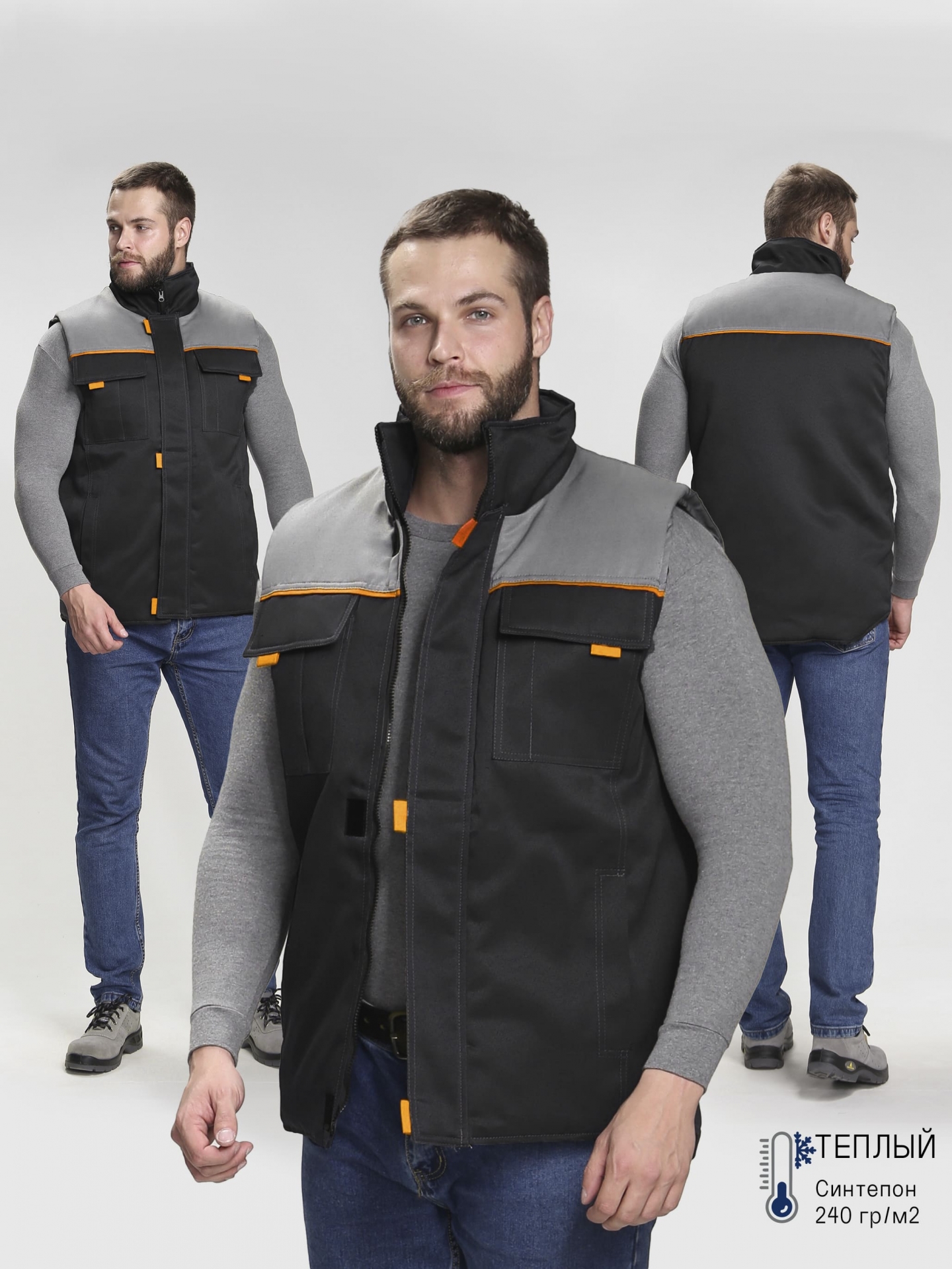 Жилет утепленный Флофт (тк.Смесовая,210), черный/серый