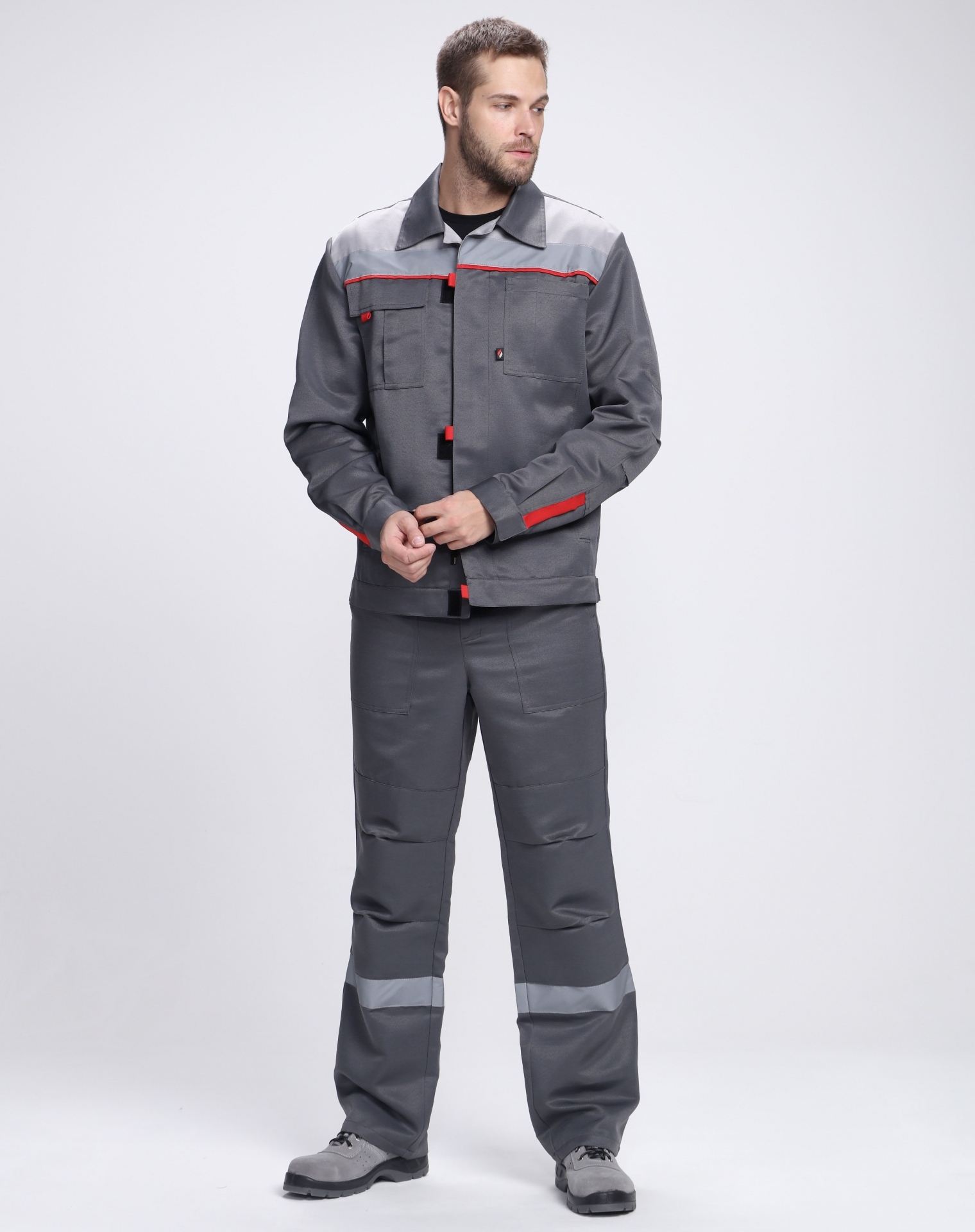 Костюм Флофт-1 СОП У. (тк.Смесовая,210) брюки, т.серый/серый/красный