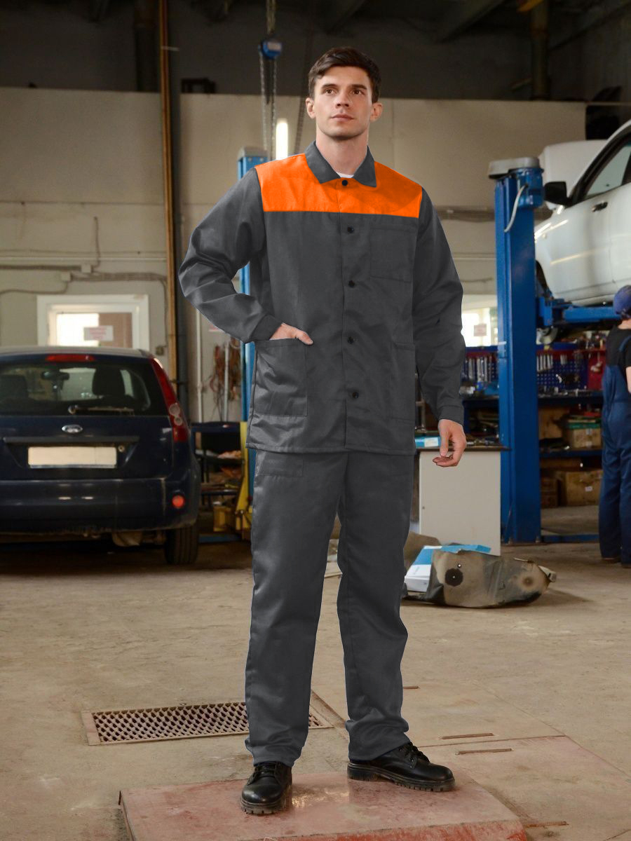 Костюм рабочий (тк.Смесовая,210) брюки, т.серый/оранжевый