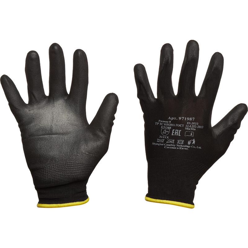 Перчатки нейлоновые с ПУ покрытием ладони, черные