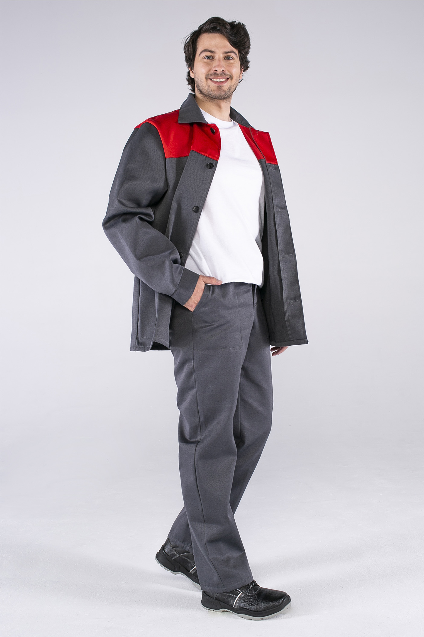 Костюм Стандарт (тк.Смесовая,210) брюки, т.серый/красный