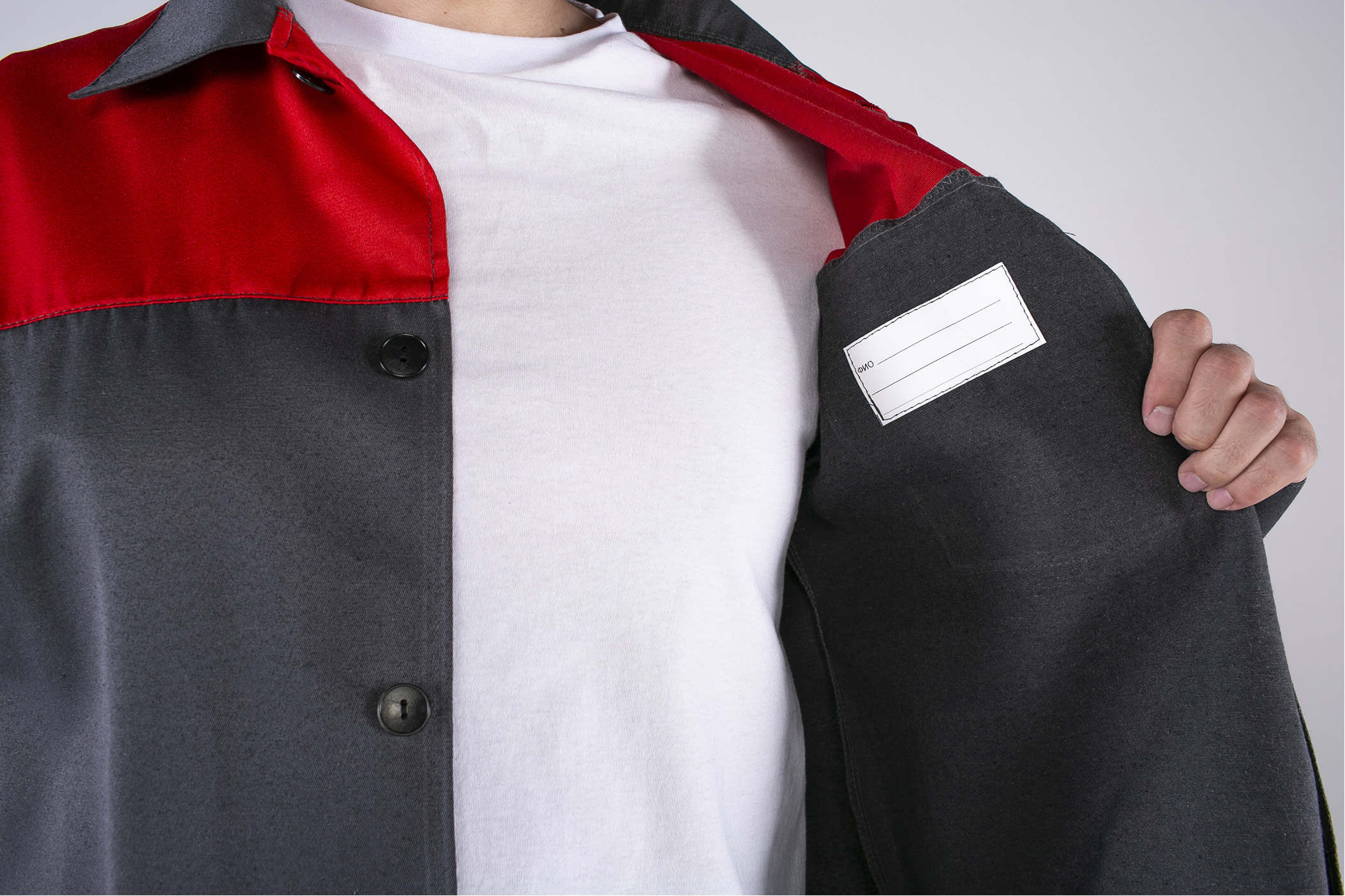 - Кокетки из отделочной ткани с нагрудным карманом и петлей для бейджа