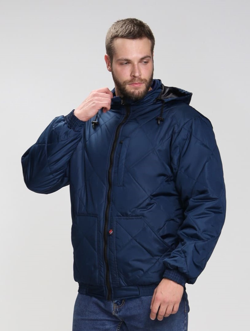 - Благодаря плотной ткани с влагоотталкивающей пропиткой и утеплителю синтепон куртка великолепно защищает от холода и осадков