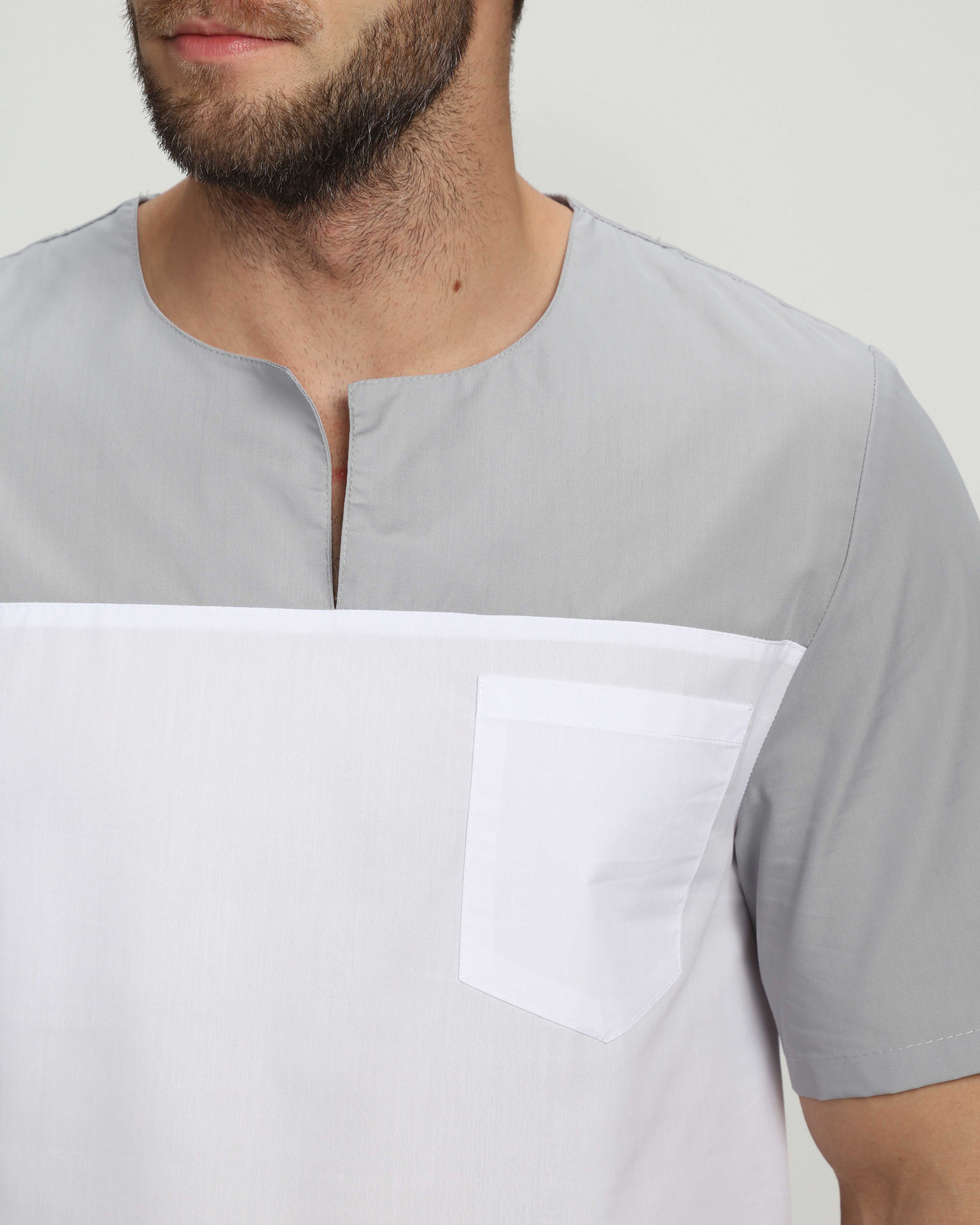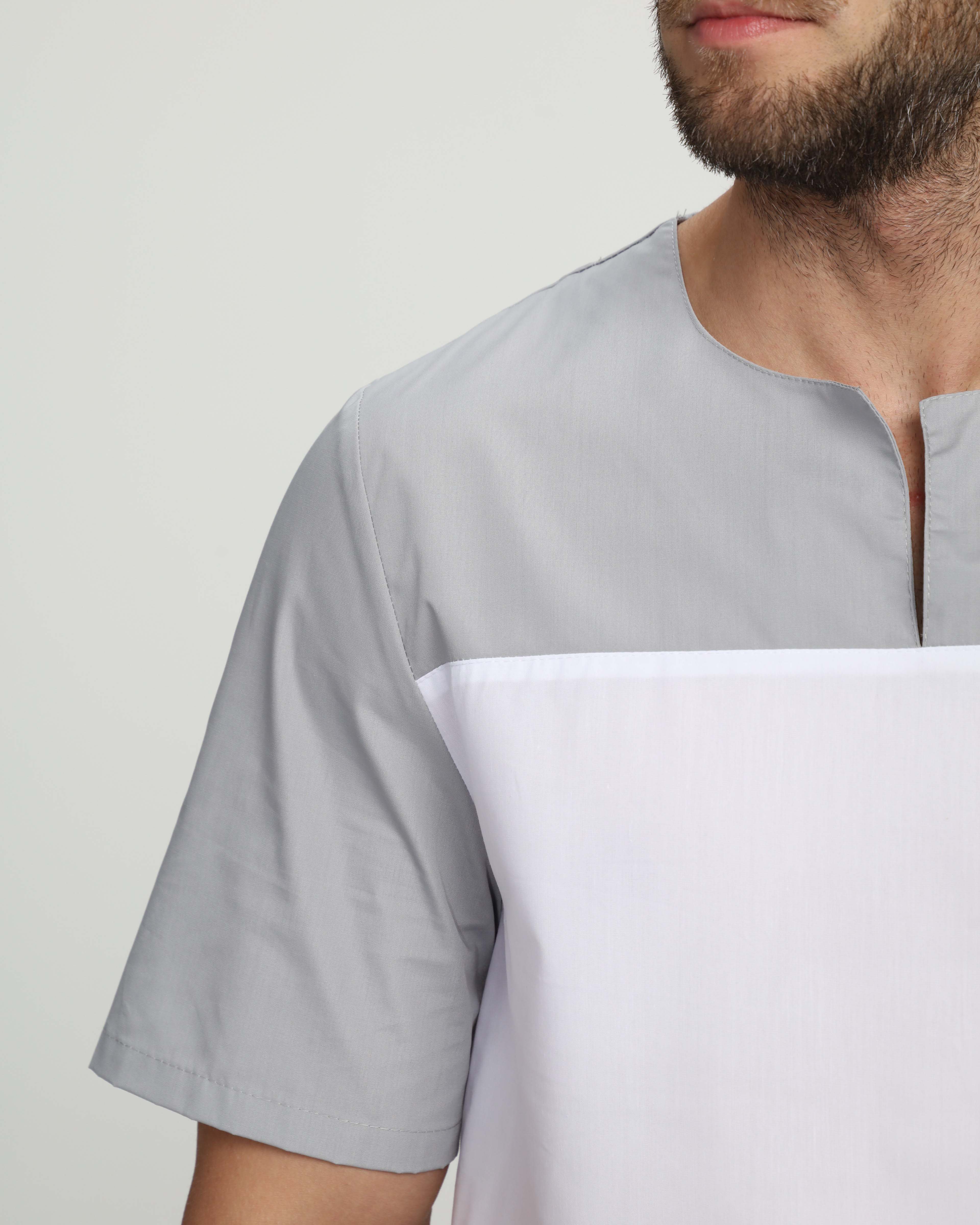 Мужской костюм Стоматолог (ткань ТиСи), серый/белый