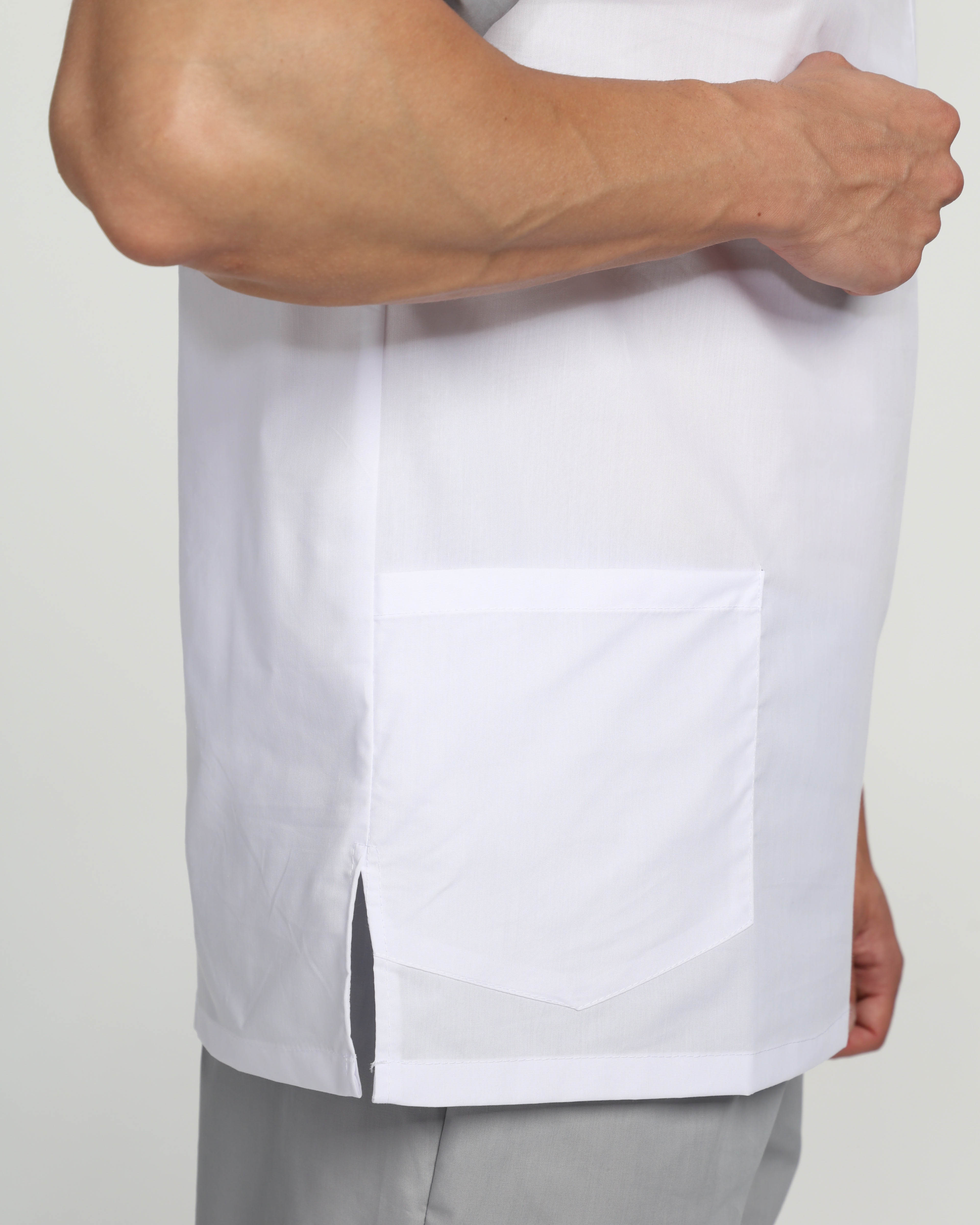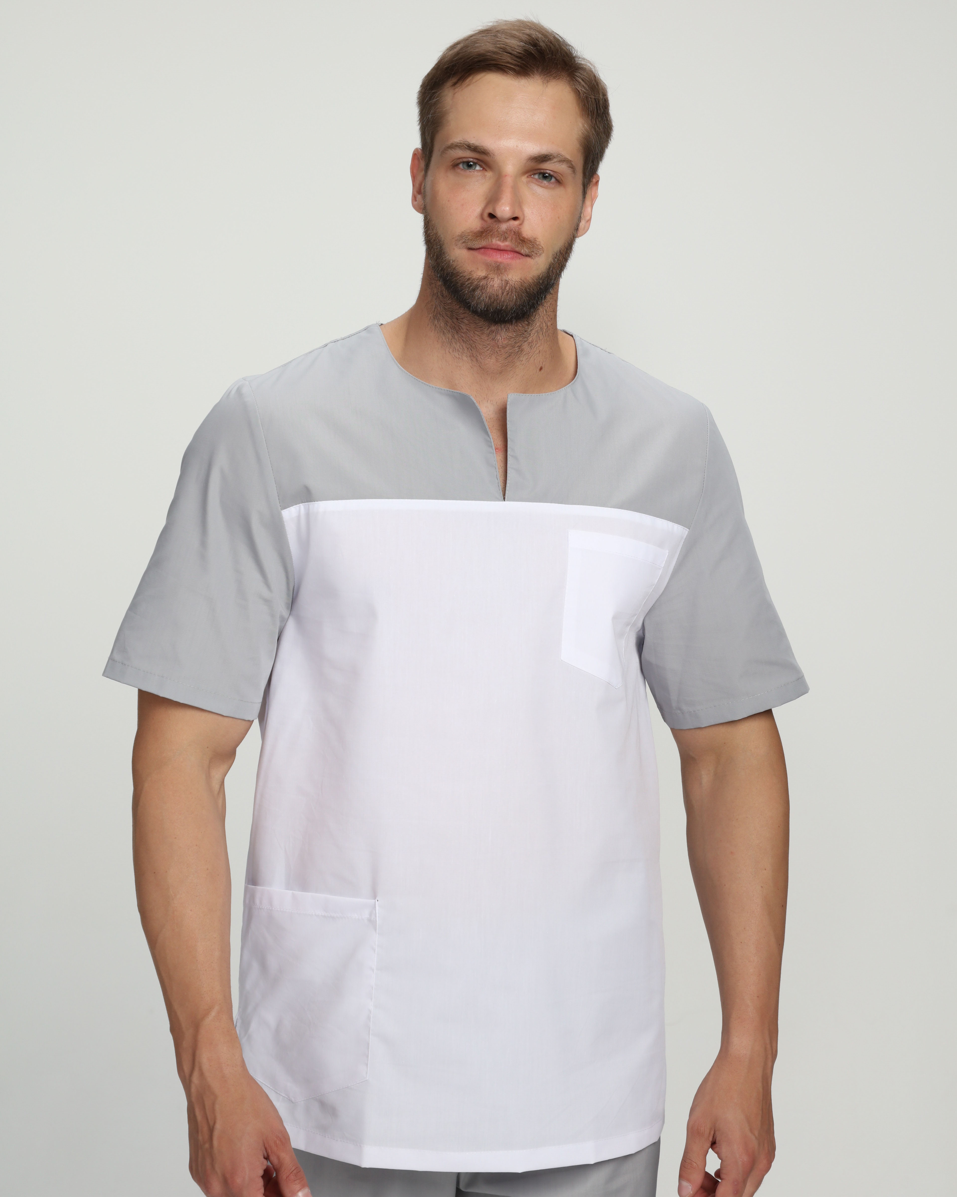 Медицинский костюм мужской «Стоматолог» разработан специально для сотрудников медицинских учреждений, стоматологий или массажных кабинетов. Мужская одежда для врача состоит из двух предметов: рубашка медицинская + брюки мужские. Спецодежда изготовлена в соответствии с ГОСТ, надежно защищает от общих производственных загрязнений. Удлиненная блуза свободного кроя подходит мужчинам разной комплекции и обеспечивает свободу движений. Блузка легко надевается и снимается благодаря удобному V-образному вырезу воротника с центральным разрезом. Для хранения мелочей предусмотрены два кармана: боковой и нагрудный. Рабочие брюки на резинке удобны и долговечны. Прямой силуэт и контрастный цвет брюк замечательно гармонируют с верхом костюма. Благодаря коротким рукавам рубашки и легкому материалу медицинская одежда комфортна в работе даже при высоких температурах.