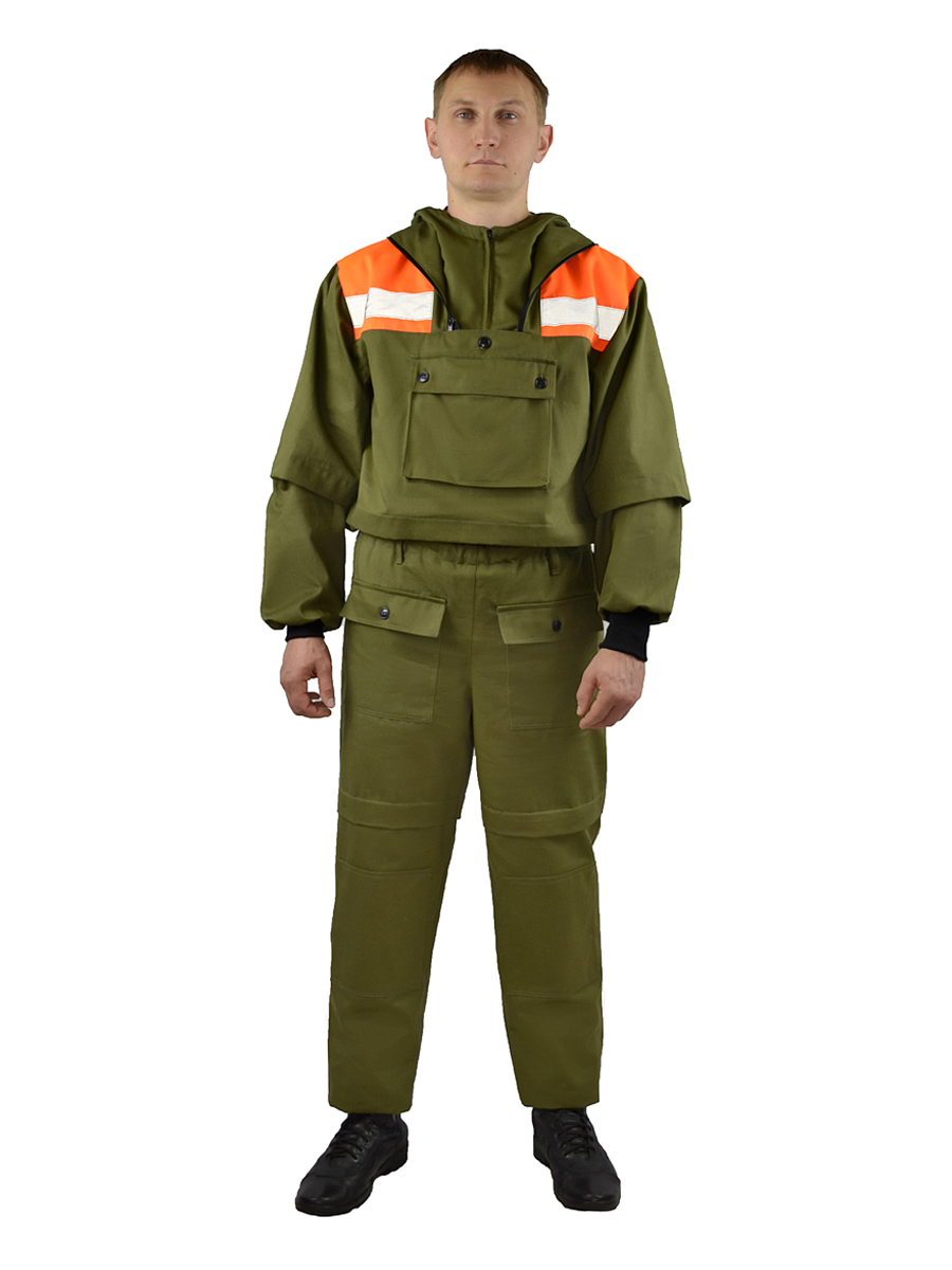 Костюм противоэнцефалитный СОП (тк.Саржа,250), хаки/оранжевый