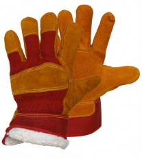 Перчатки спилковые комбинированные утепл.(иск.мех) желтые с красным