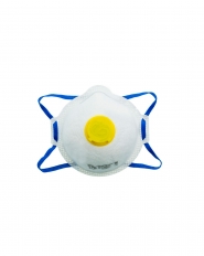 - Респираторы с клапанами. Подходят для надежной защиты человека от вредных паров и аэрозолей, которые могут появляться вследствие аварии на производстве, пожара, утечки газа. Средство фильтрует пыль и используется в бытовых и производственных целях. Клапан выдоха облегчает дыхание в помещениях с высокой влажностью.